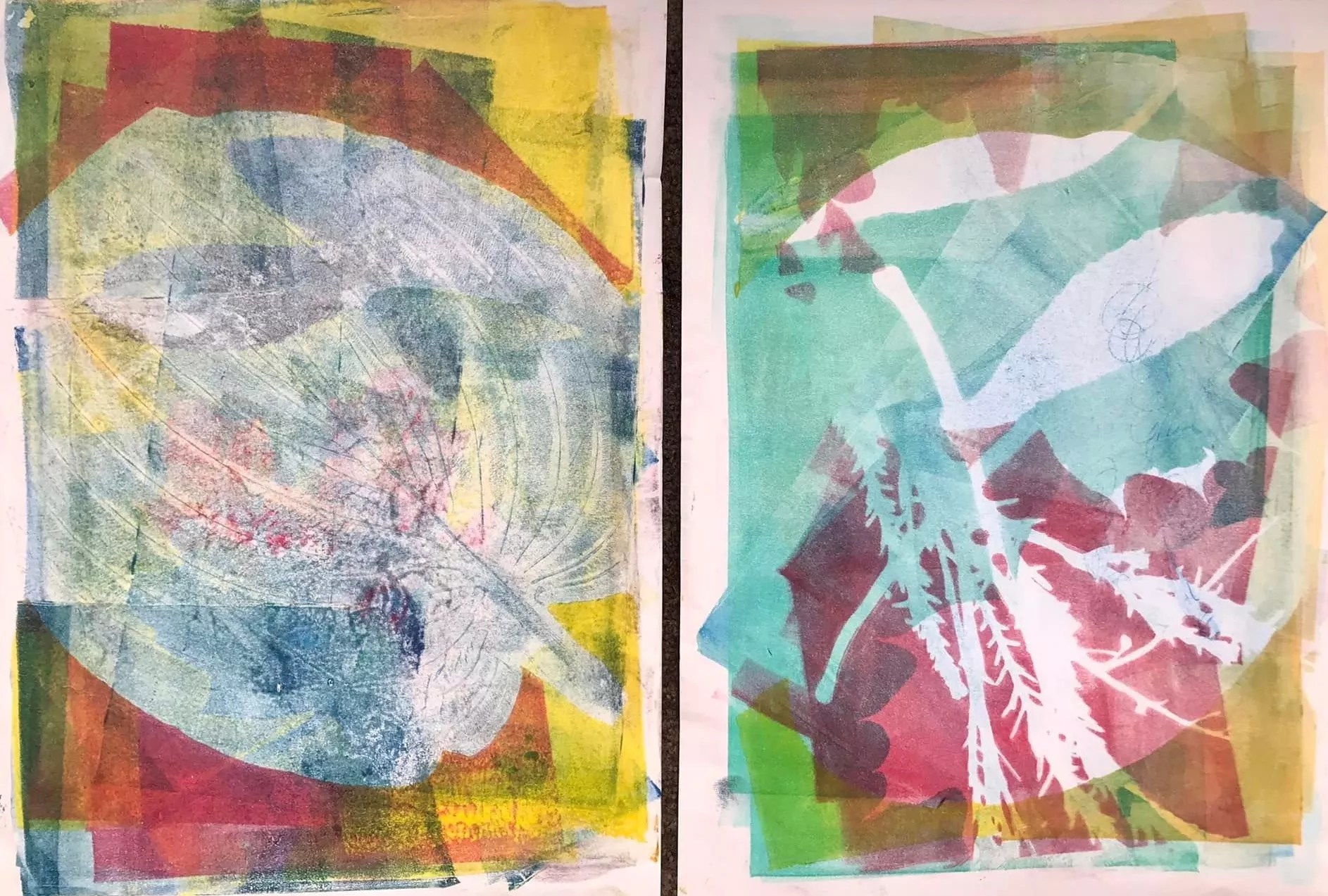 Dan Drossman reflects on a life of pain for Betraying Our Ghosts, driven by his lifelong search for an answer to chronic pain he’s lived with from the time he was eleven. He sampled one therapy after another, had surgeries and still suffered, until following the mind-body path led him to a solution. He began delving into the secrets of his unconscious mind through art, writing and research, and now he’s showing the results. Lisa Lee Adams follows another route — painting whatever comes to her as she creates a piece from scratch.
