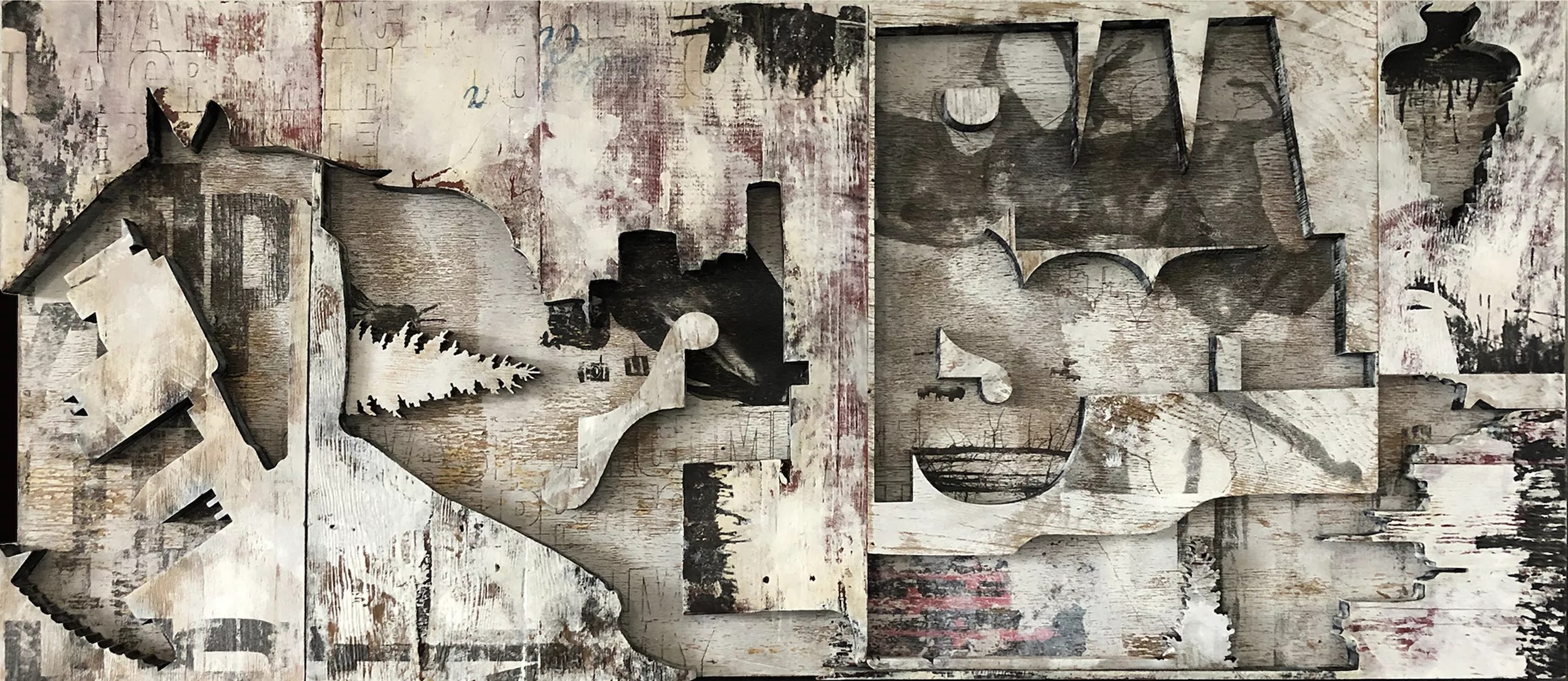 Brett Matarazzo, ”Remains of an Untamed Humanity,” mixed media on reclaimed wood.