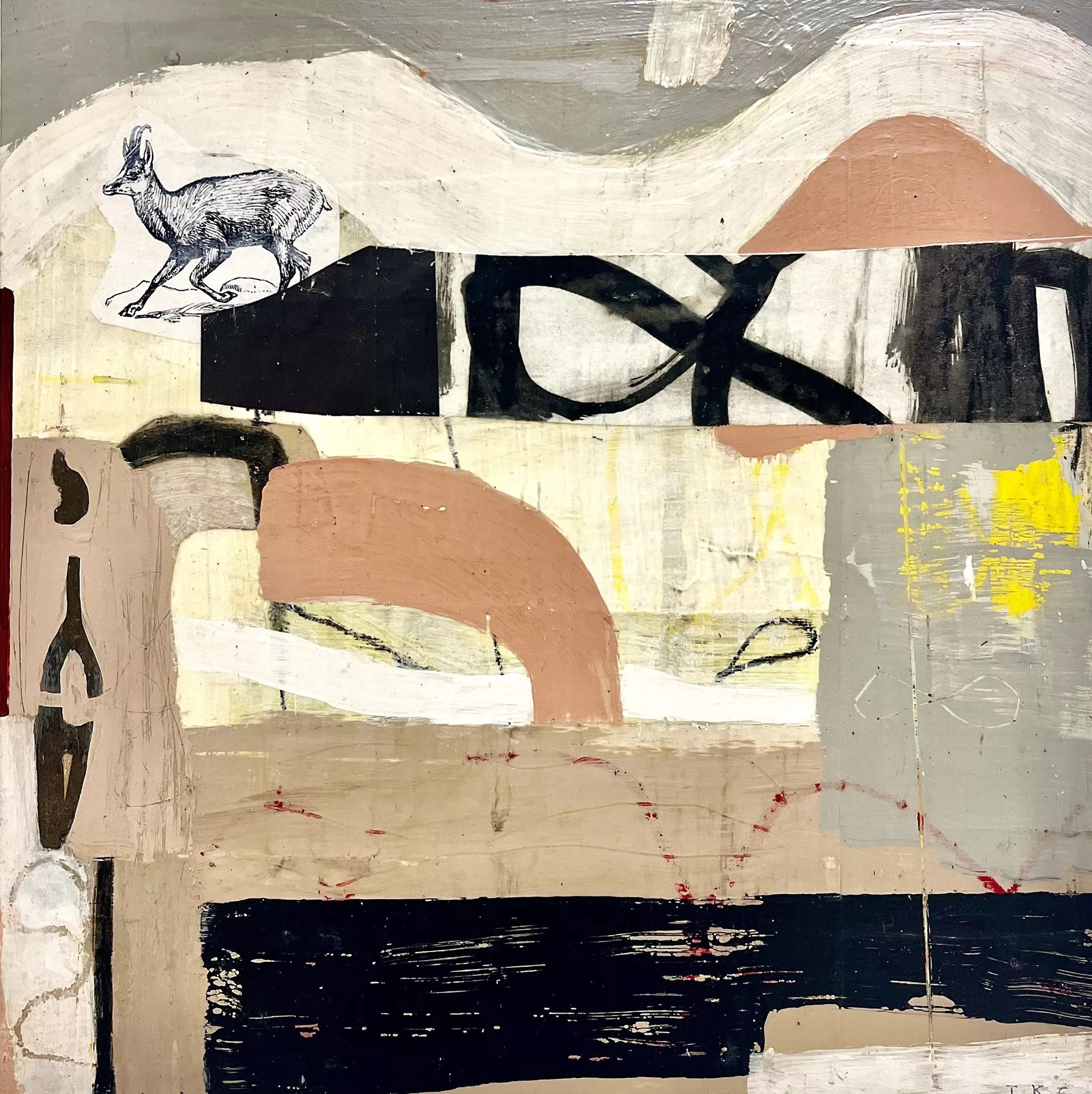 Tara Kelley-Cruz, “All Who Wander,” mixed media on cradled panel.