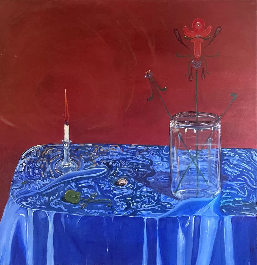 Davíd Mejia, “All on the table,” 2022, acrylic on canvas.