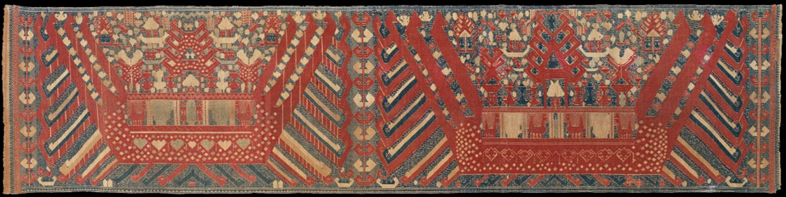 Three works by contemporary American artist Nancy Hemenway Barton entered the Textile Arts and Fashion Department. Barton specialized in textile wall sculptures created from a wide range of fabrics sourced from indigenous weaving communities around the world; this donation was made possible by the late artist’s sons. The three pieces are on view as part of Confluence of Nature: Nancy Hemenway Barton, which opened February 16.