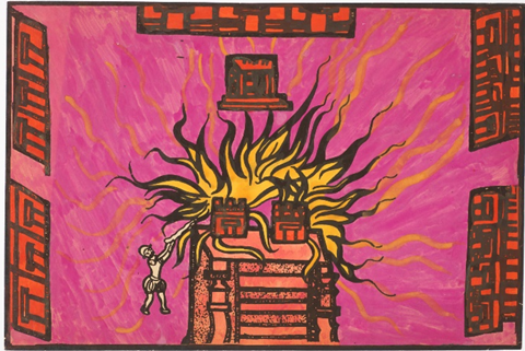 Hand-tufted Wool Carpet by Alexandra Kehayoglou Leslie Tillett’s “Spainards Set Fire to the Temple at Tlatelolco.” DAM
