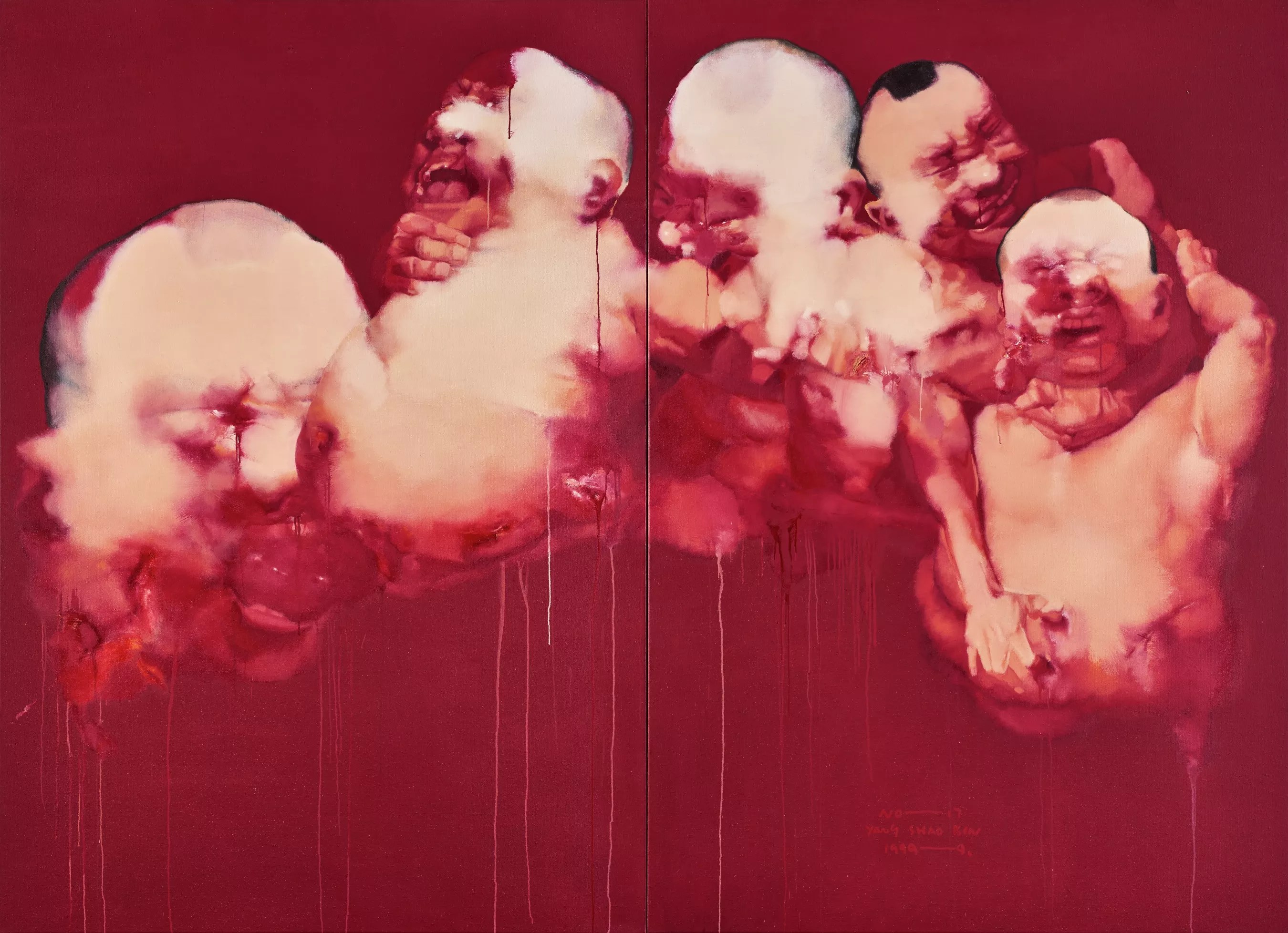 The overarching theme is underscored by each artwork, and some are simply disturbing at first sight, without knowing about the artist’s disruptive intentions. Yang Shobin’s “Untitled” is immediately unsettling, with faded, anguished faces appearing to violently struggle out from an alizarin background. And Gavin Turk’s “Camouflage Self Portrait (A Man Like Mr. Turk)” is as difficult to look away from as it is to look at.