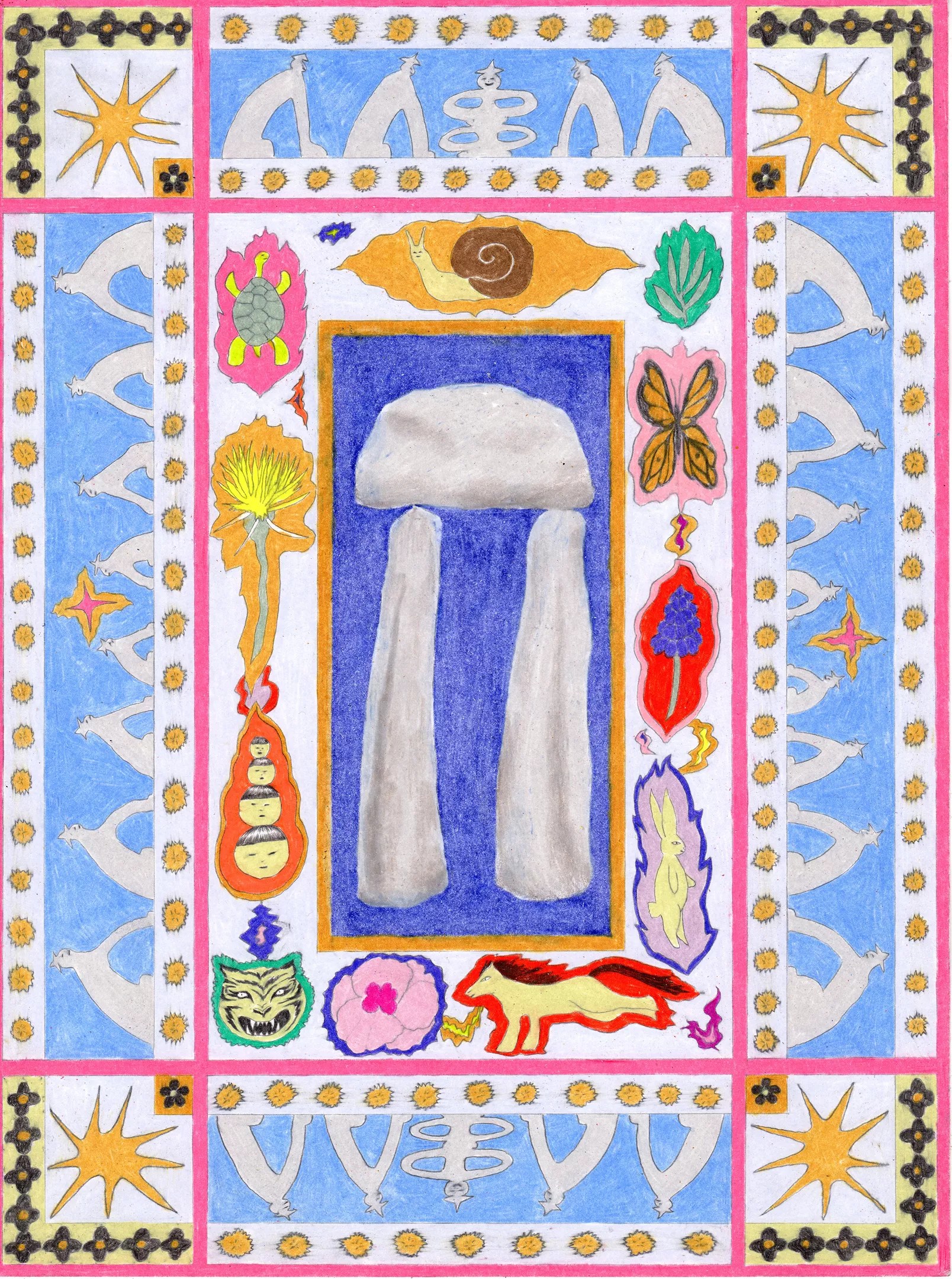 Cory Feder, “A Procession of Elders,” 2023, colored pencil on Bristol paper.