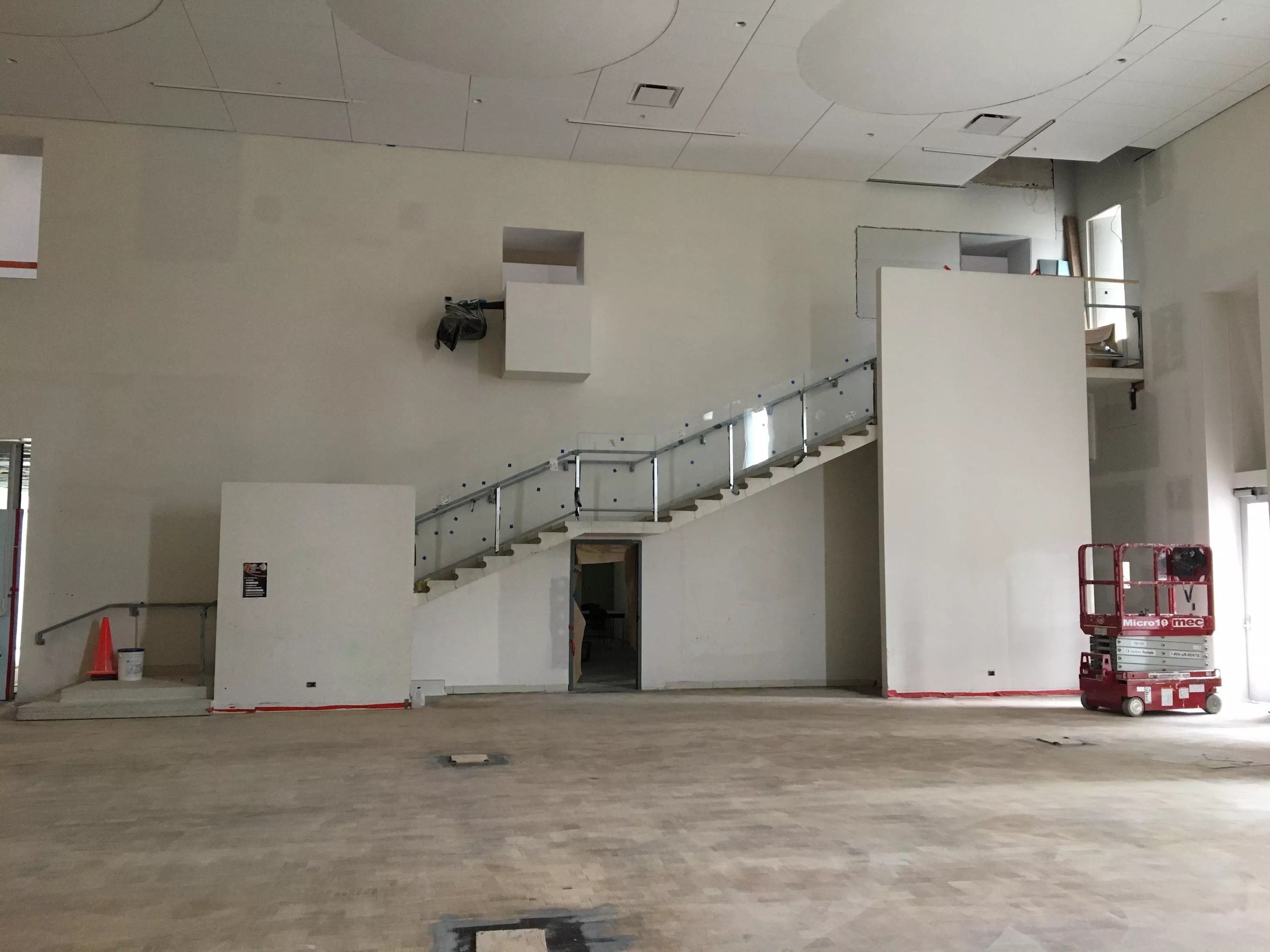 The double-height space in the Martin Building being redone as the Bartlit Creative Hub.