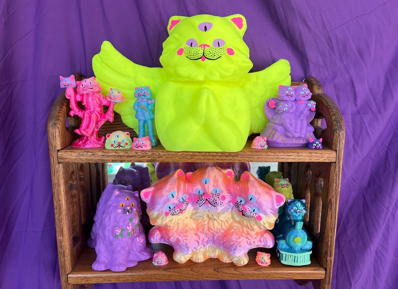 Kathryn Batsel’s wacky installation at the Storeroom window gallery is coming to an end this weekend, but not without a final toast — which is easier now that the adjoining Vine Street Pub is having a soft opening after a four-year closure since the start of the pandemic. Folks are invited to enjoy a last look at Batsel’s adorable Day-glo feline fantasy (where individual pieces are for sale) before entering Vine Street for a pour.
