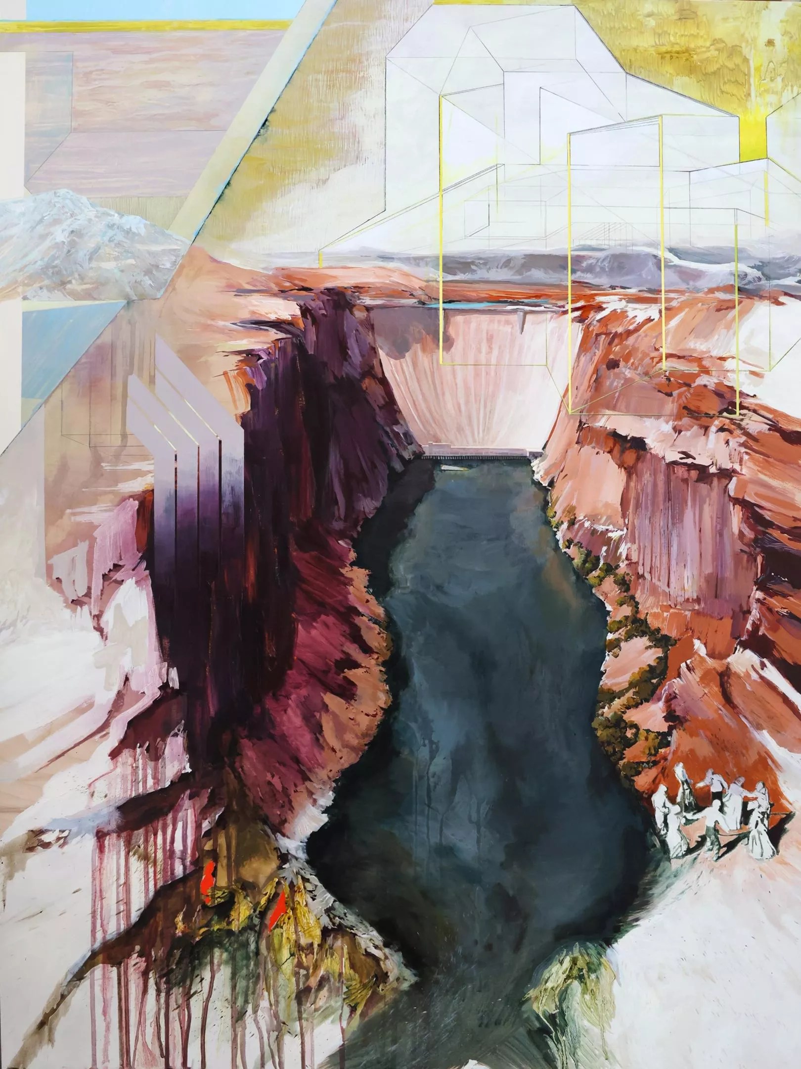 A duet of new commissioned work by Noelle Phares and Chelsea Kaiah, Tracking Time, opens for the summer at BMoCA, with both artists approaching the changing human footprint on nature from personal points of view. Phares, a landscape painter, looks to environmental science through seven views of the Colorado River, while Kiah turns to Ute and Apache symbology and human connections to nature by juxtaposing natural leather and man-made materials as art mediums referencing Indigenous hunting practice. Both artists will interact more personally with the public during the show’s run: Phares will lead a gallery tour and talk on June 20, and Kiah goes hands-on for a Rawhide Painting Class on July 20, assisted by Akalei Brown.
