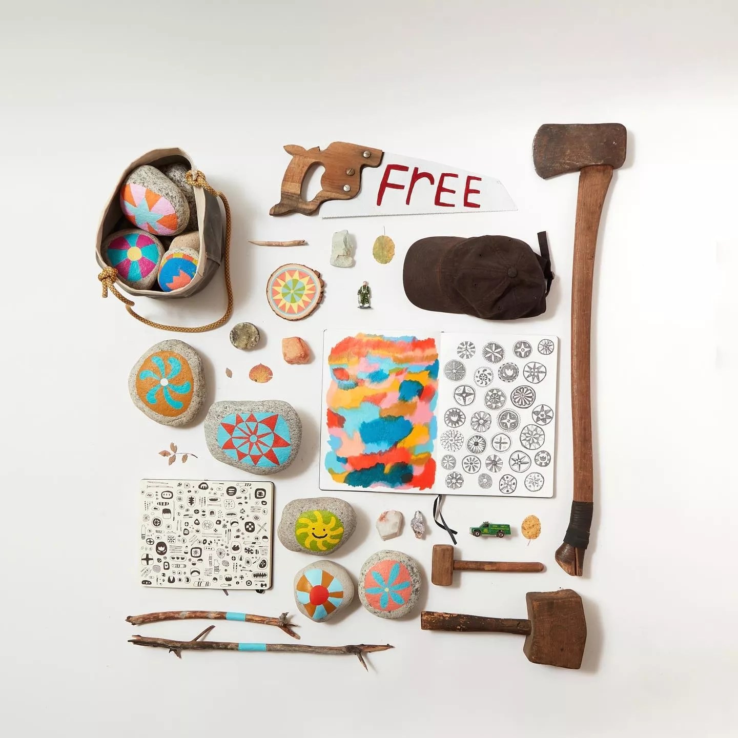 Jackie Barry — forester and wildland firefighter, printmaker and book artist — makes art that lights a fire in your heart, using a visual shorthand of shapes, words, objects and painted stones and tree slices to suggest, not tell, stories of home. Not home as in a house, but the home that’s inside you and feels like home, leaving you comfortable in your own skin. Barry’s world has no room for rugged individualism, but is large enough to bring communities together — not in a groupthink, but as a vessel for collaboration, give and take, and sharing, passing it around. Jackie Barry is groovy. What are *you* doing Saturday night?