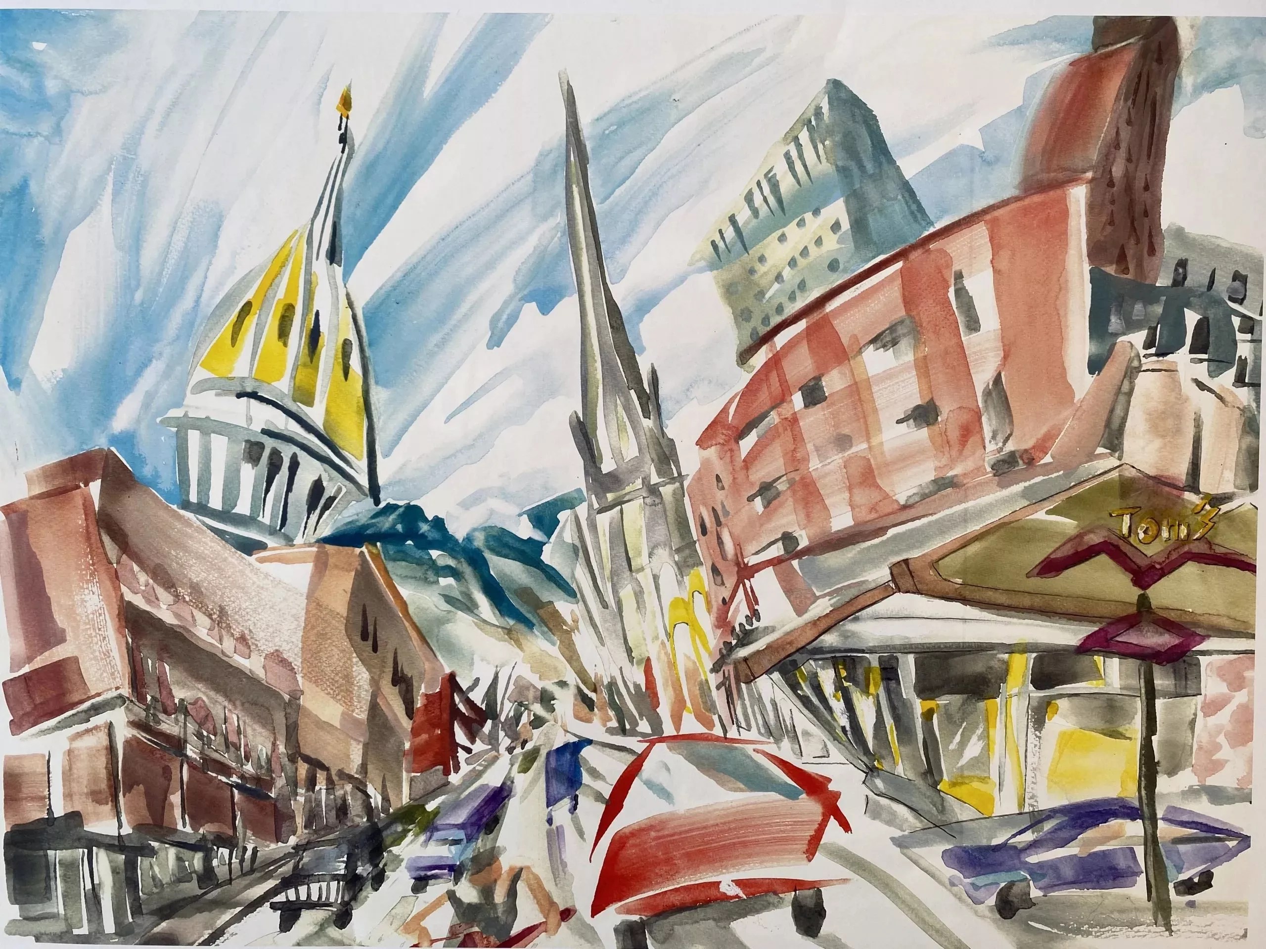 Ed Natan, “Tom’s,” watercolor.
