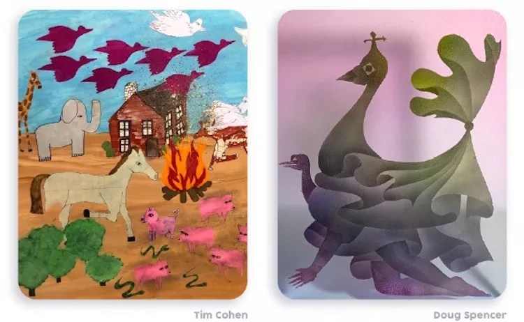 Deliberately strange art by Tim Cohen and Doug Spencer at Lane Meyer Projects.