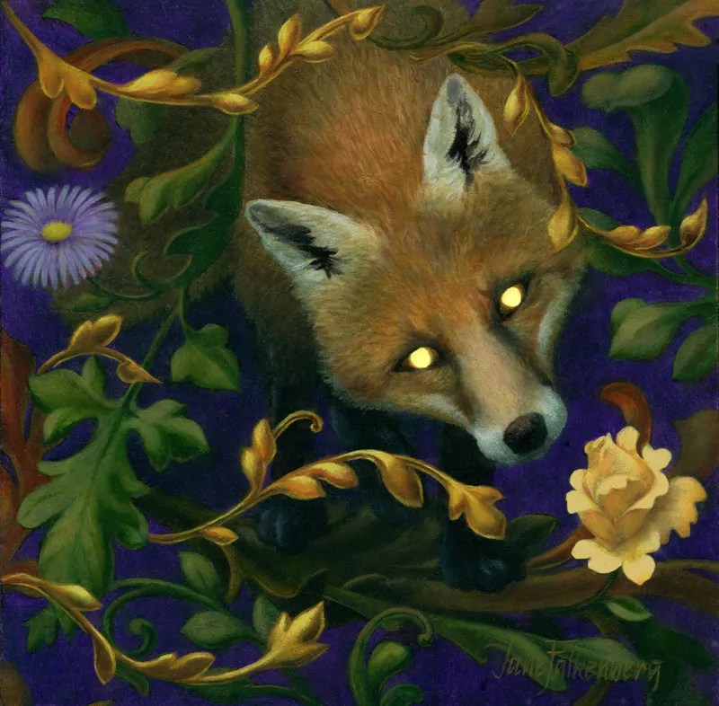 Jane Falkenberg’s portraits of nocturnal animal with glowing eyes and Lisa Luree’s fantasy works of skeletons, angels and mythical creatures rub elbows in a way that’s both funny and dark. It’s a good visual match-up in the season of things that go bump in the night.
