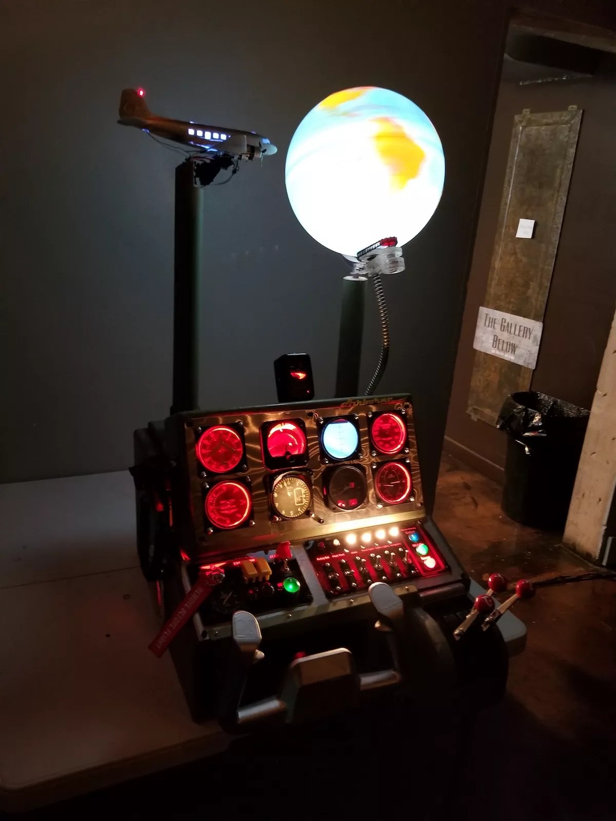 Charles Russell: I grew up going to art galleries and museums with my parents. My dad was a teacher and my mother an artist, and they wanted me to be exposed to culture, but for me as a small child, even amid the Picassos and Monets, most of those visits were torture, because for a kid it’s still just a picture on the wall. From the beginning, I set out to create art that was interactive and fun for everyone. I am highly influenced by the design aesthetic of the Art Deco/Art Nouveau movements, particularly the Streamline Moderne designs of the great industrial designer Raymond Loewy. Just as steampunk took the industrial designs of the late nineteenth century and took a fantasy artistic slant, I strive to take the designs of the ’30s and ’40s and add an early science-fiction twist. I spend a good deal of time searching for vintage items and using their inherent beauty to create machines that expand on that beauty to transform the viewer/user into another time with interaction and sensory immersion.