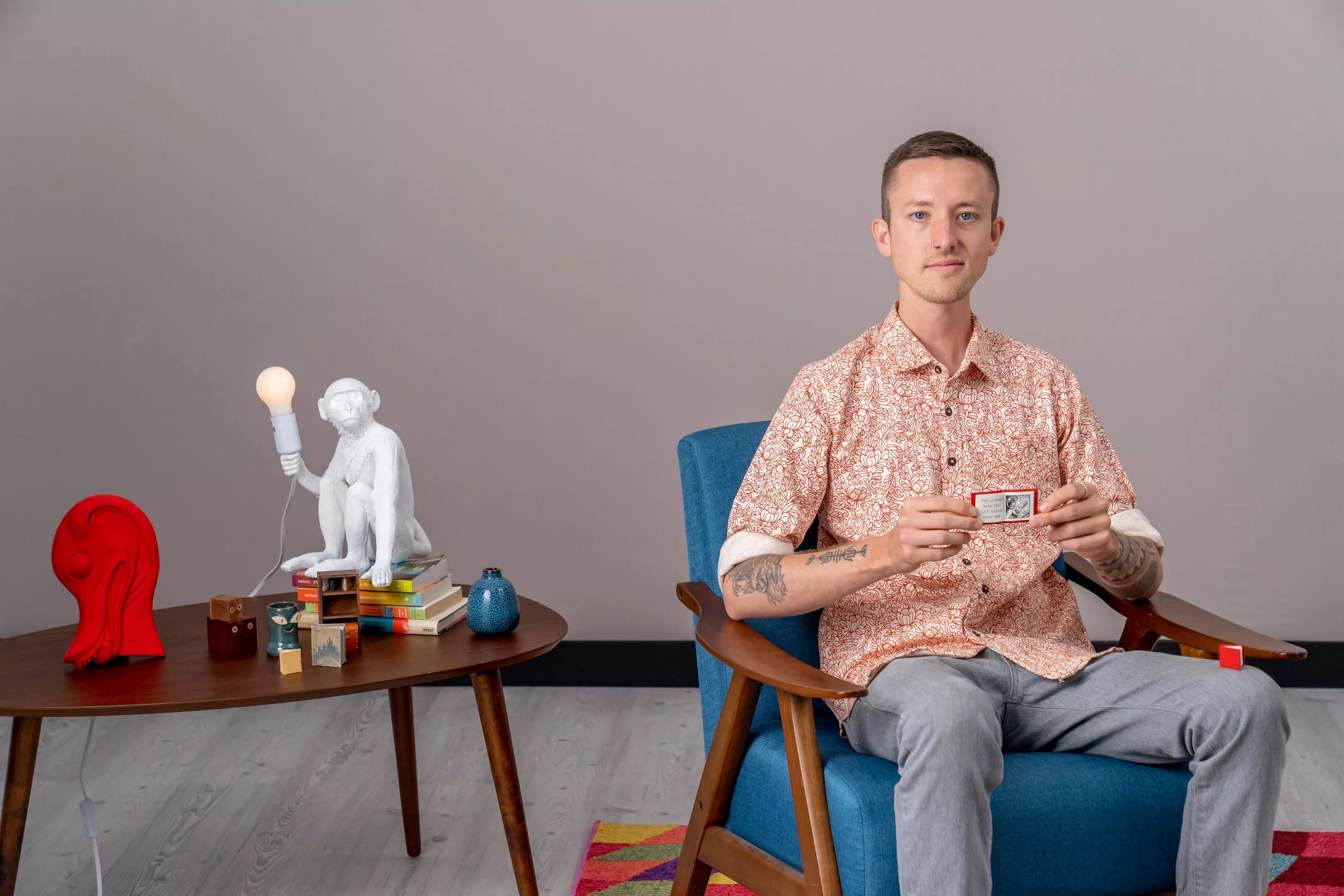 In February, Moon Gallery asked Lorenzen to create the book itself. Luckily, he had plenty of experience. Lorenzen has been bookbinding and creating miniatures for years, and combining the two art forms by creating miniature books.