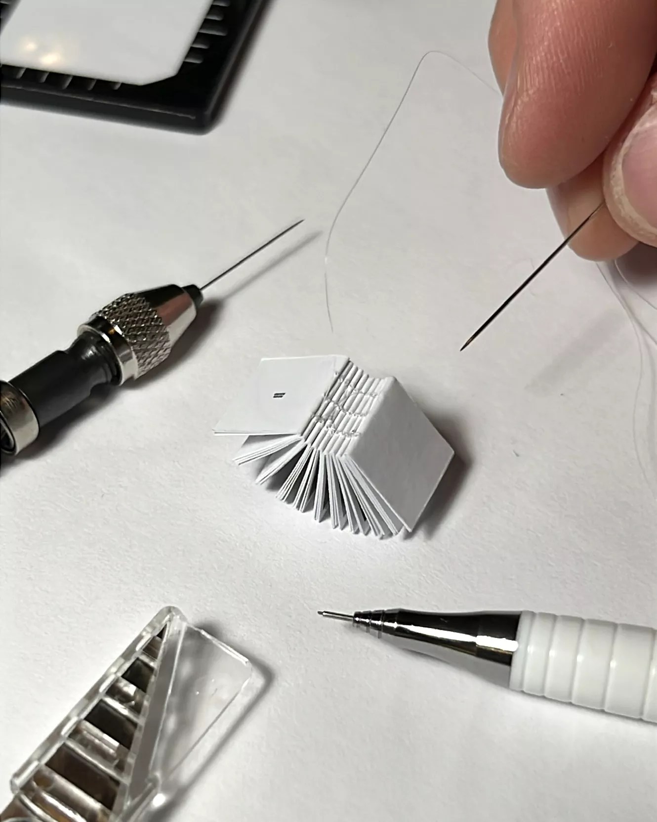 Lorenzen is no stranger to the miniature bookbinding game — one of his past projects was even smaller than Moon Bound — yet he says working at such a small scale creates a unique experience.