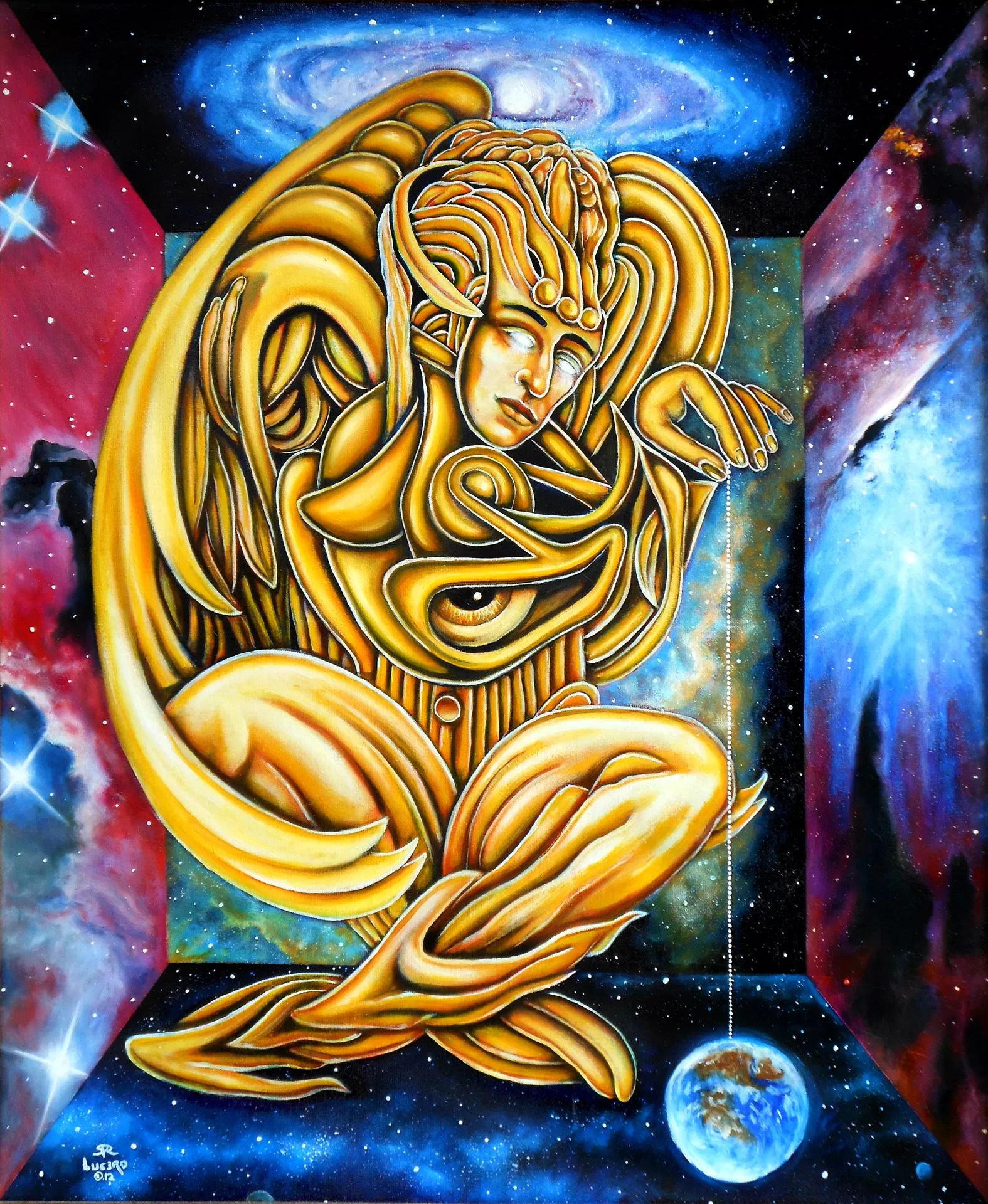In short: God. But what does that mean? I’ve been having strange non-ordinary experiences since I was a kid. In a tribal culture, I would have been the child that would be apprenticed to the Medicine Man. In this culture, my dreams, visions and non-ordinary experiences would be classified as mystical, and maybe I would have been promptly locked away. So I kept these experiences to myself. As I grew, I saw the world as something that was more than it appeared to be. This led me to what I call a spiritual path, a mythic path full of symbolism and mystery. It led to art inspired by my journey to God.