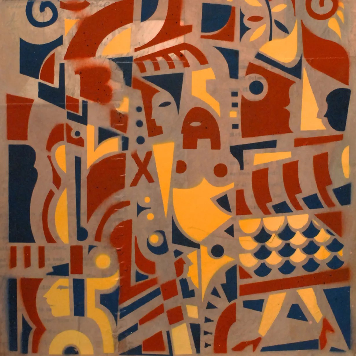 A native New Yorker now living in Denver, Vincent Comparetto walks the planet at street level, but with a global view fired by a love for traveling. When he’s not doing that, Comparetto teaches, makes films and music videos, does motion graphics design work, photographs sights seen in places near and far and, as an artist with an elegant modernist design sense, stencils designs over collaged backgrounds in limited editions.