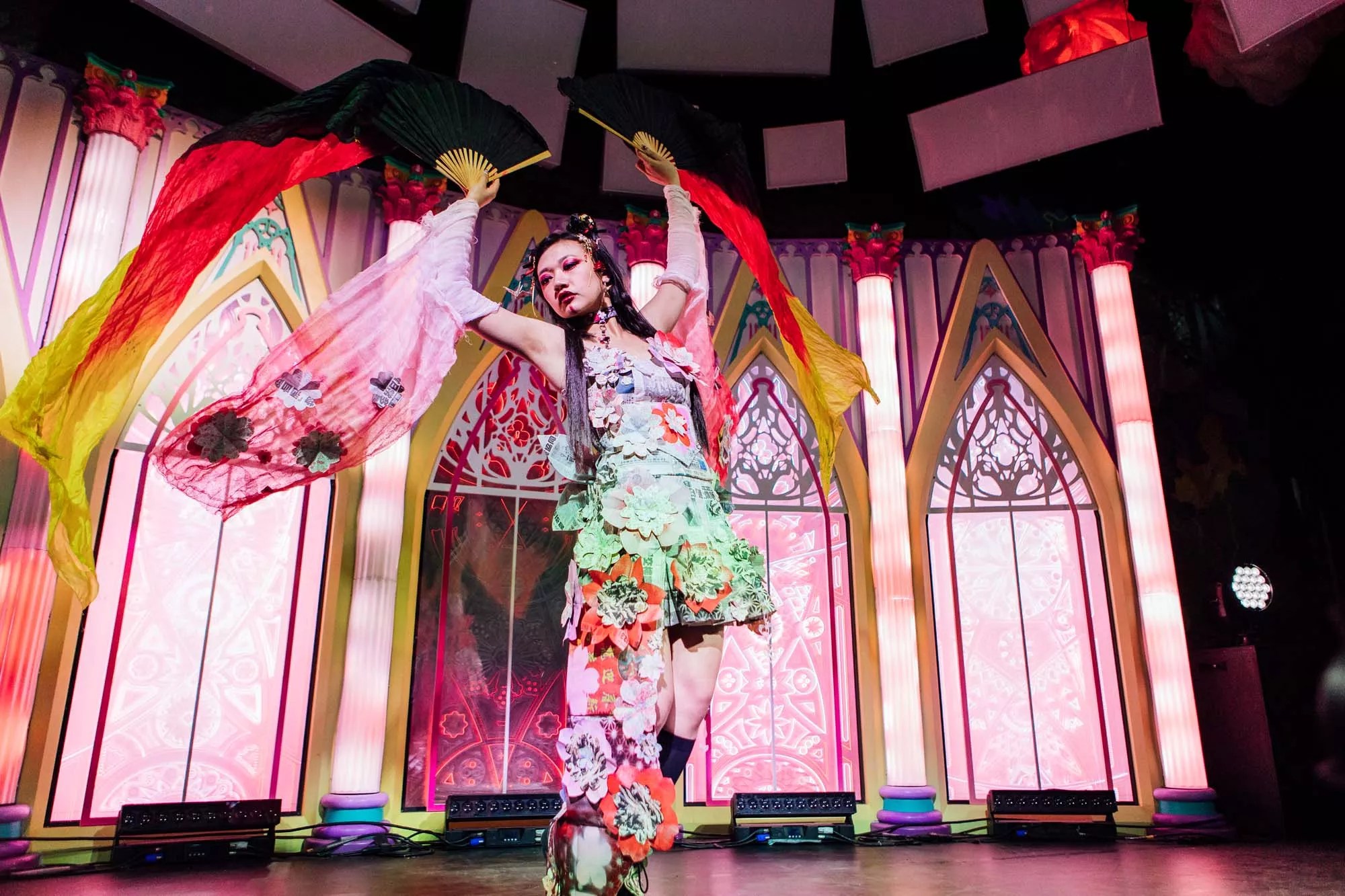 Randall, who also participated in Meow Wolf Denver’s December trashion show, says that for this edition, he wanted to honor his Chinese heritage, so he’s creating a cherry blossom tree costume. When his model, a performer who goes by MotherDaddy, walks out, the costume will just look like a cherry blossom tree at first. “But the transformation comes when they release the roots that create a train,” he advises.