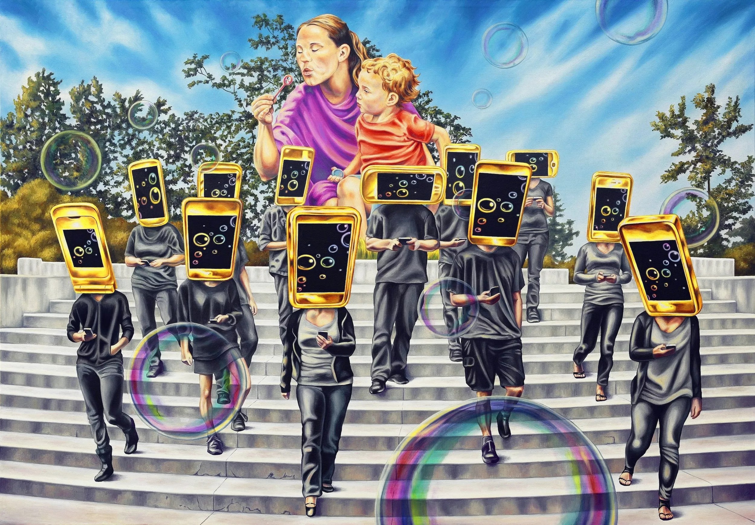 Sara-Lou Klein, “Onward,†mixed media on wood panel.