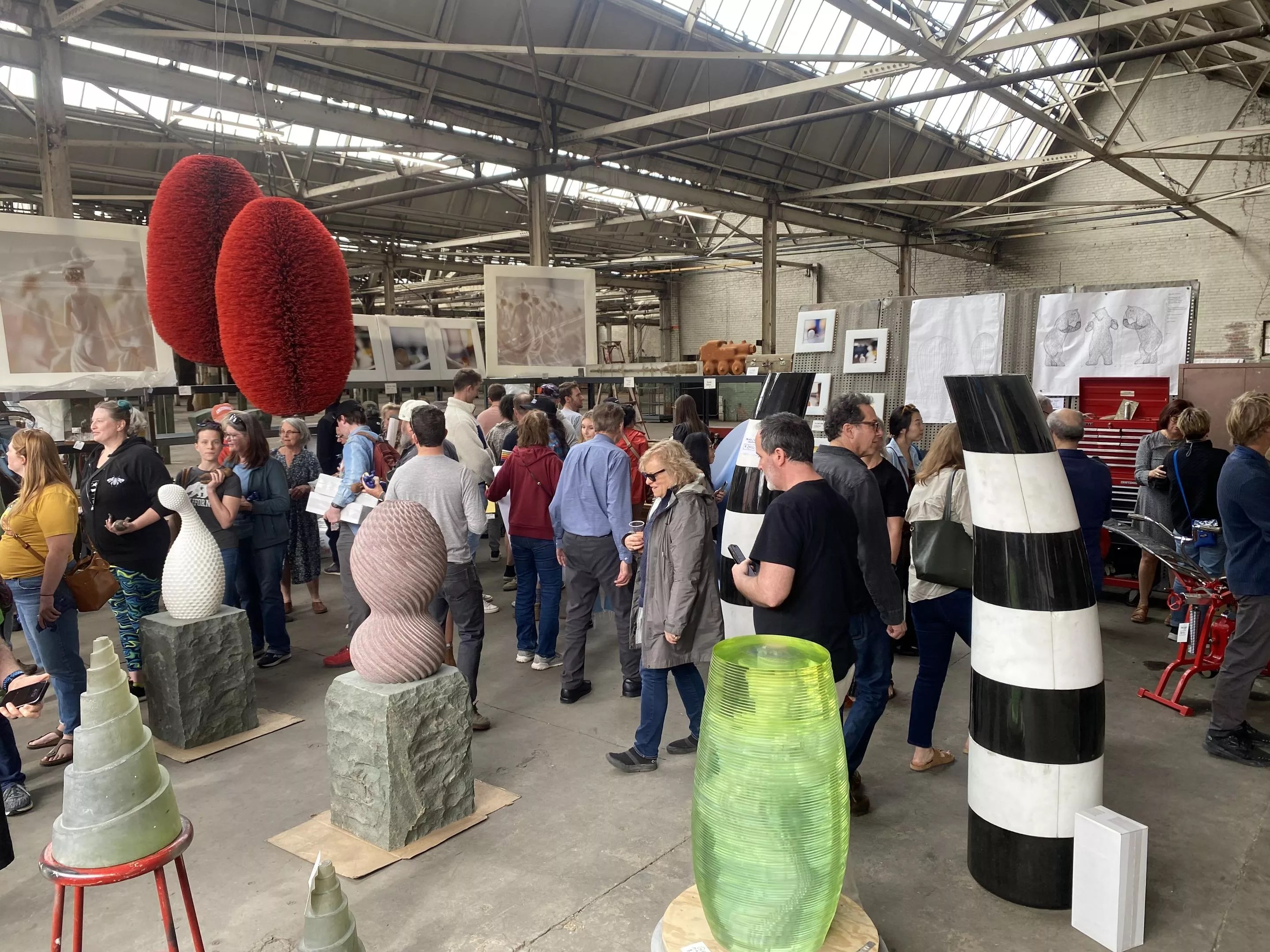 That initial burst was the most frantic, says Camron, and by the end of the weekend, about 70 percent of the work had been sold. Happily, he says, “I felt like most of the crowd was there to put pieces in homes or outside. It wasn’t my intention to sell to galleries so they could resell it. We wanted to get the art out there, and this accomplished that.” A few institutions got in on the action, too. The University of Denver, Argent’s longtime employer, bought the Cojones, a pair of large bristled orbs suspended from the ceiling, among other items. The City of Denver picked up a baby doll sculpture, and the Denver Public Library secured some of the Blue Bear blueprints for its archives.