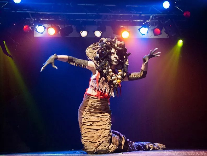 Carnivale de Sensuale always includes “a lot of weird, vaguely occult imagery,” says Happel. “I think one of the things that sets Carnivale apart is that it’s always weird. To me, burlesque is a performance art, and I encourage performers to explore that part of it. So you don’t see a lot of the traditional, classic burlesque at my show. You see a lot more innovative, performance-art-driven stuff.”