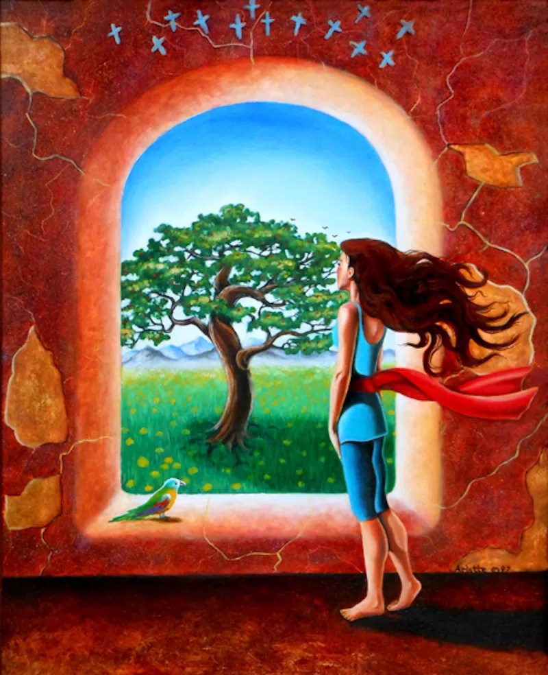 Arlette Lucero: Iconic women whose strength and power can be painted with all the symbols that represent them. The female persona that has most inspired me is the varied Mary Apparitions and the Virgin of Guadalupe in particular. Mary has come to this planet in a variety of colors and clothing to remind humankind to pray for peace before war with love and understanding. She would like us to take care of our Earth Mother and to pray for her healing.