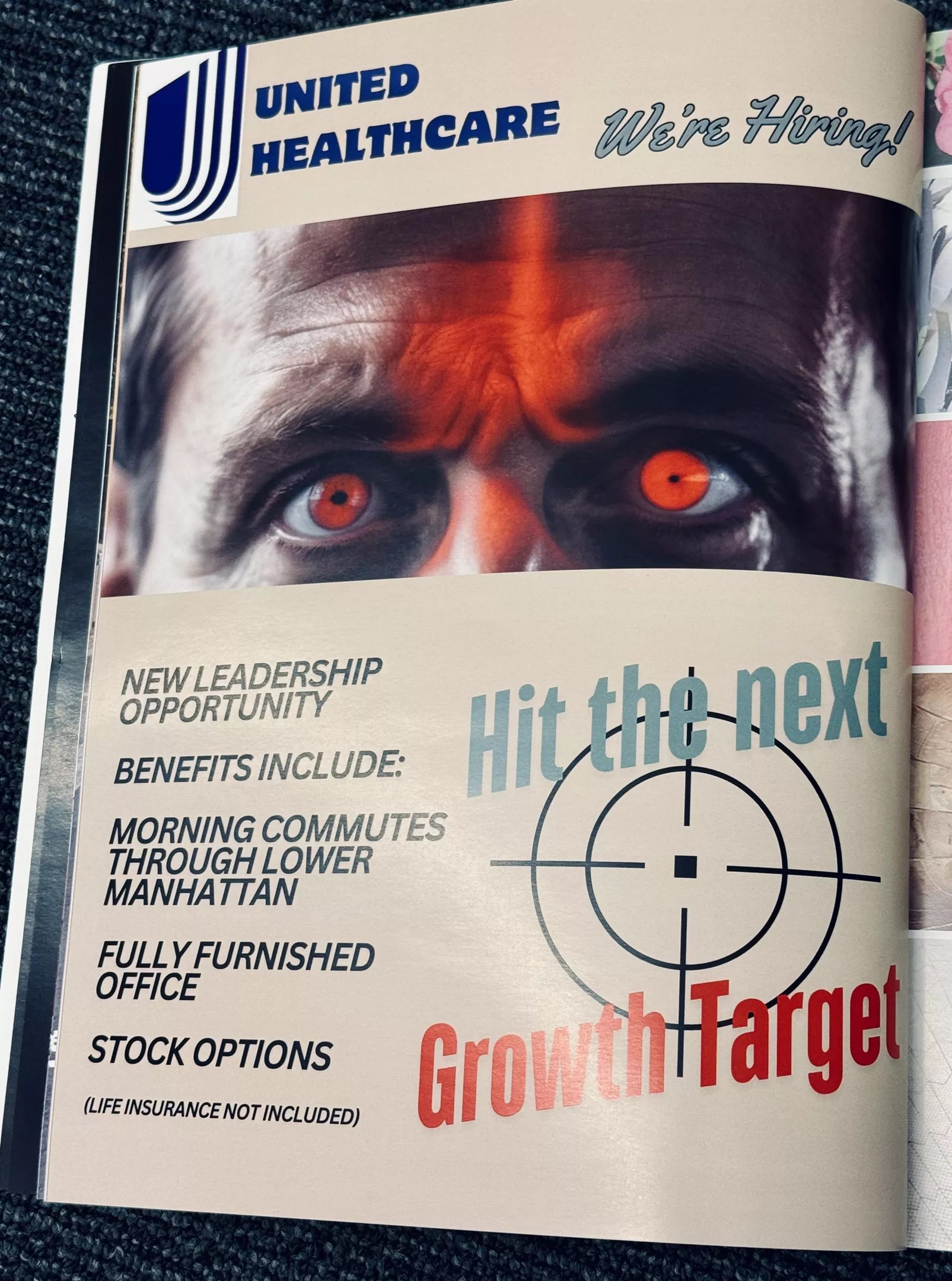 The collective is preparing to publish Volume 4 of the magazine in July. Glossy and full-color with articles, poetry, photography and visual art by locals, the magazine carries no ads except satirical ones, like a “We’re hiring” message from United Healthcare, whose CEO was assassinated in Manhattan last December, along with a scope’s crosshairs and the words “Hit the next Growth Target.” Articles inside Volume 3 include a pro-reintroduction article on wolves and coexistence; calls to organize in the face of fascism; a letter from “Planet Earth” (“Either you break up with capitalism and find someone who respects what we have … and stops fucking raping me, OR I’ll kill you both. In fact, I will kill all of you.”); and a deep dive into methods for social change.