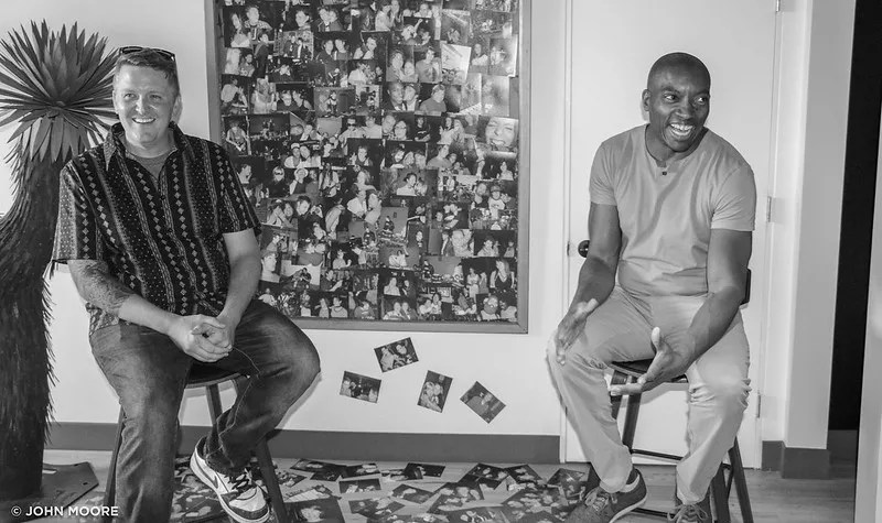 Jason Diminich (left) speaks with photographer Julian Wakefield (right) at Biome 002.