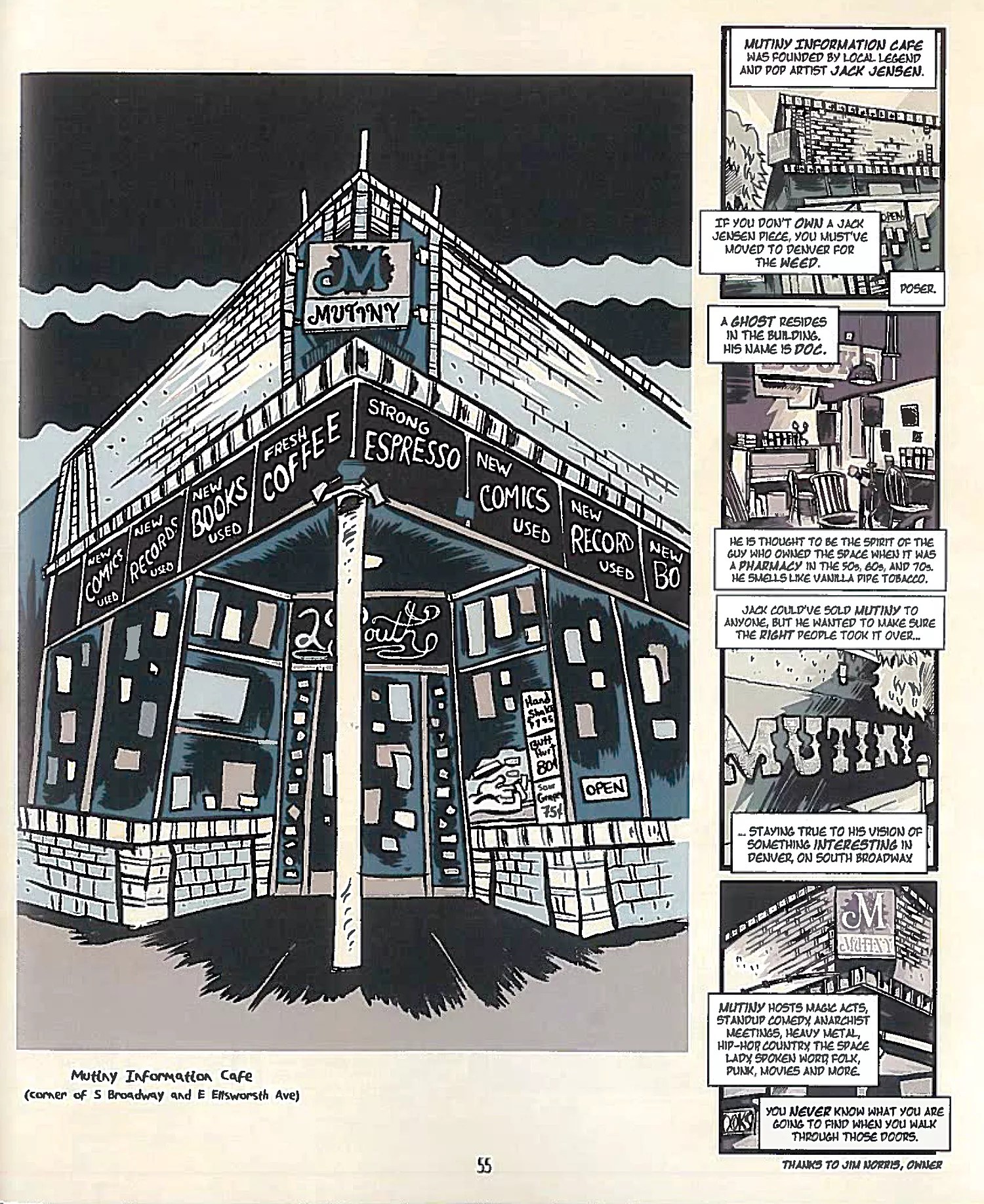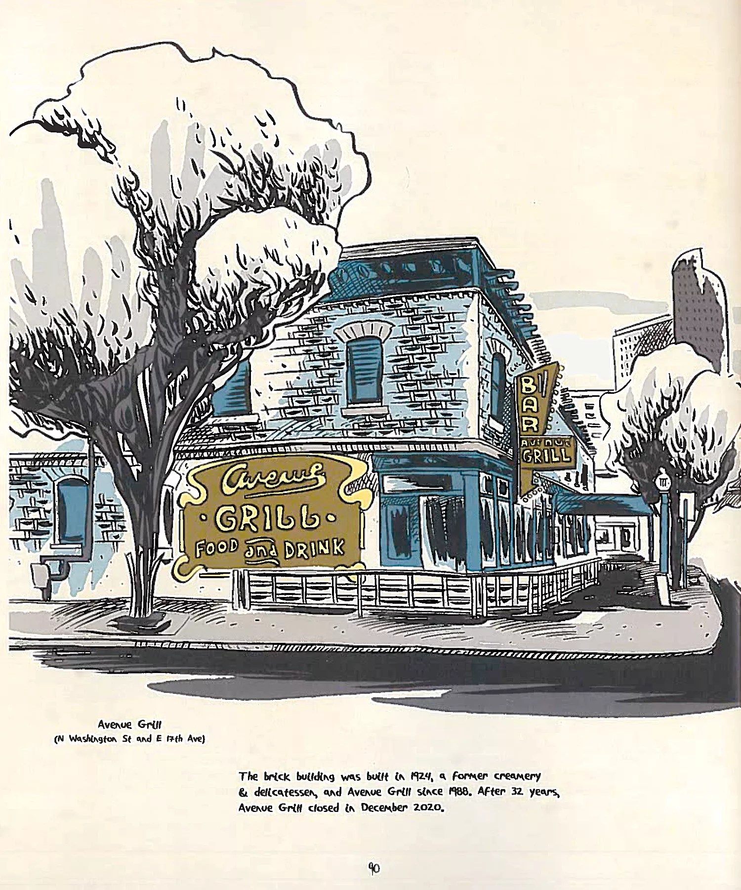Compiling and illustrating the book during the pandemic proved more challenging than the cartoonist could have imagined when he began the project. Some spots he documented had already closed before COVID hit; a jarring number of entries are footnoted with tags like “Gary Lee’s Motor Club & Grub closed in November 2018.” And other places, such as Streets Denver (formerly Streets of London), closed after the book — which drops on April 10 at shops like Mutiny, Kilgore Comics and online — went to press.