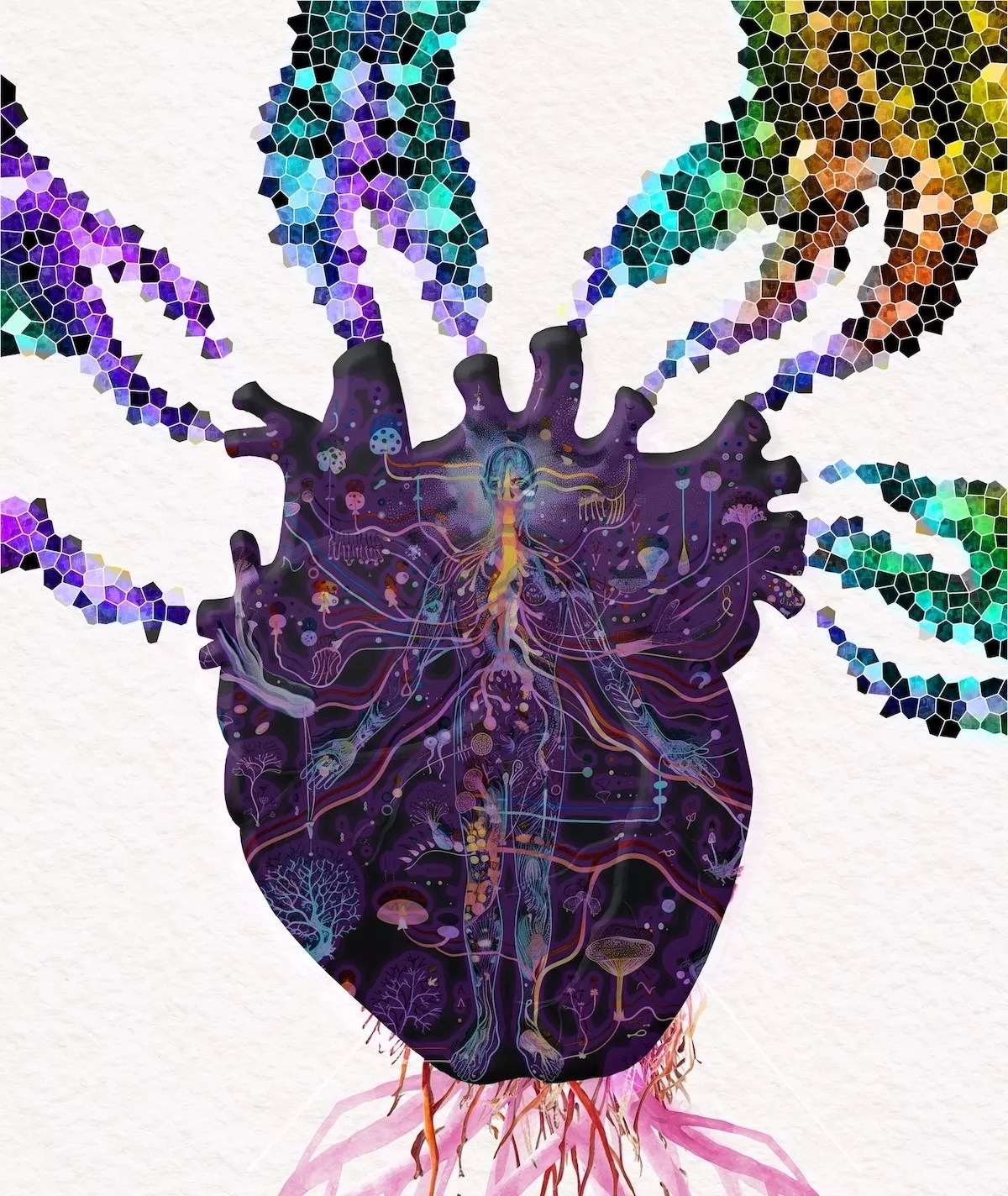 At Edge, member Alane Holsteen contributes her recent bubbly waterscapes and landscapes in encaustic, pigment and ink, while associates Nolan Tredway and Heather Hauptman join in with an interactive series of human hearts representing participatory communication (Tredway), and embroidered textiles (Hauptman).