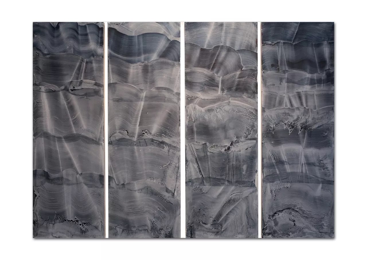 Madeleine Dodge, “Thaw,†2021, indigo on steel panels.