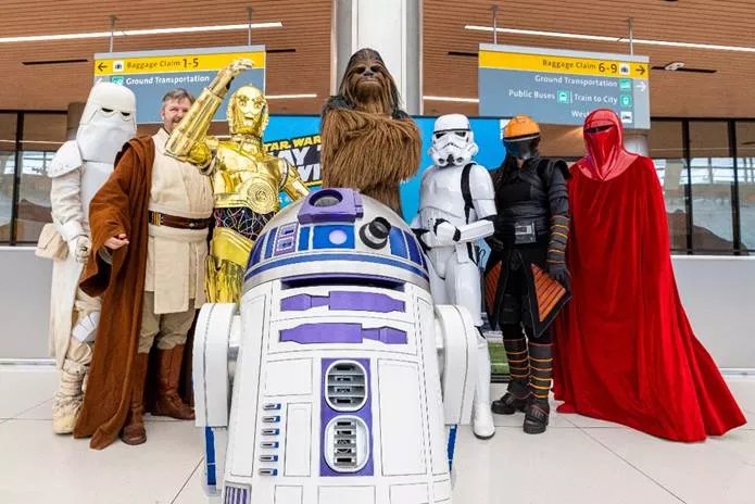 Don’t be surprised as you rush with your suitcases in the Great Hall near domestic arrivals if you are flanked by costumed characters showing off their movie-accurate attire. Maybe you’ll love it, or maybe you’ll want to get far, far away.