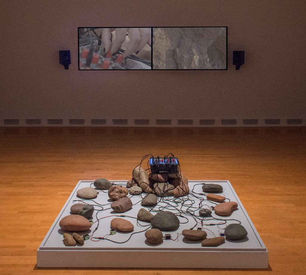 Tania Candiani uses a percutor to create a feedback loop from rocks from Red Rocks Amphitheatre.