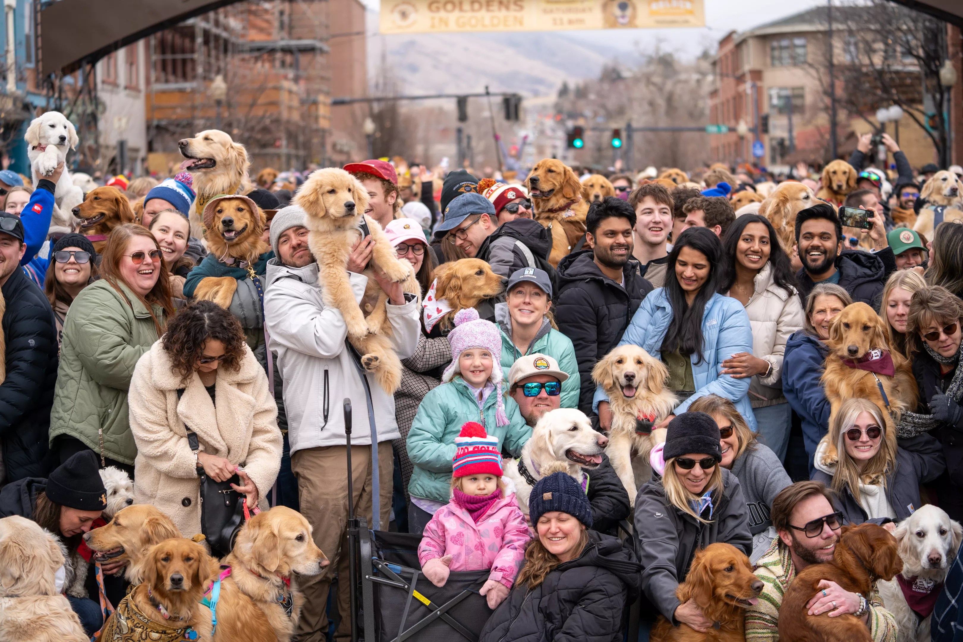 While the dog days of summer are still months away, hundreds of Golden retrievers brought warmth to Golden’s Parfet Park on Saturday, February 8, for the city’s annual Goldens in Golden event celebrating National Golden Retriever Day.