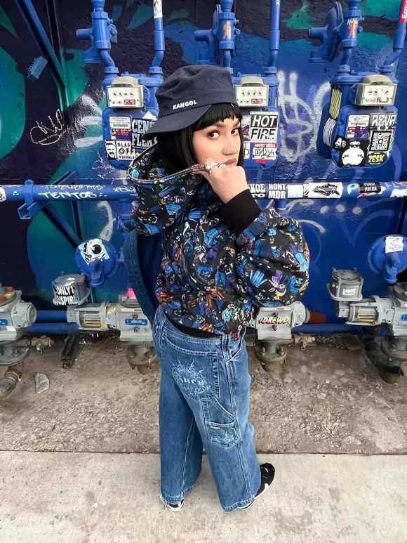Kitty rocking a blue-dominant outfit with her distinct taste.