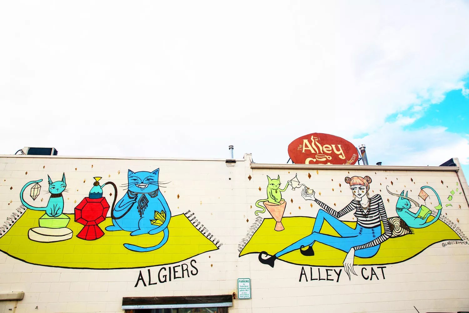 Zimmer’s mural outside of the Alley Cat Cafe in Fort Collins.