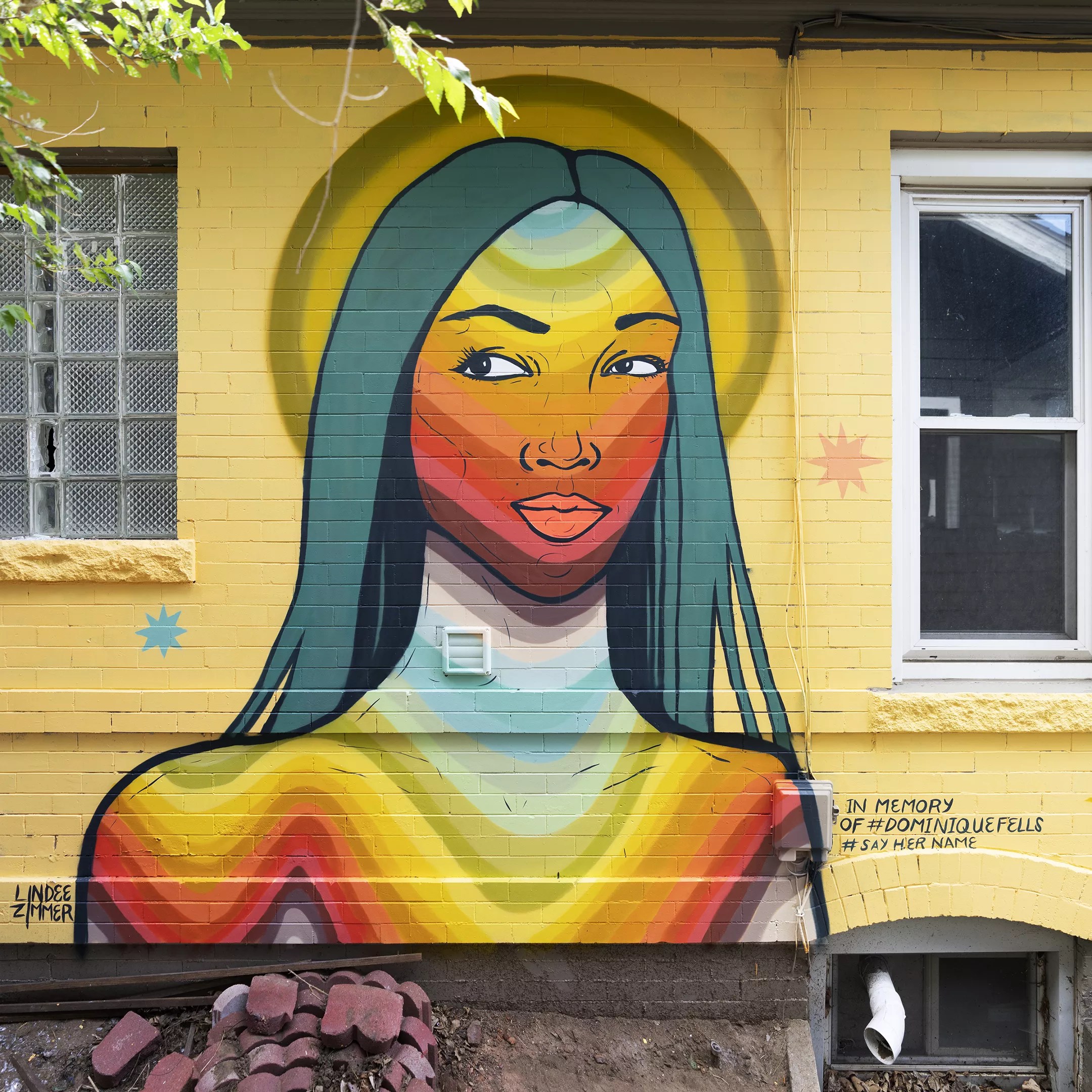 Lindee Zimmer’s mural of Dominique Fells outside of a house on Tennyson Street.