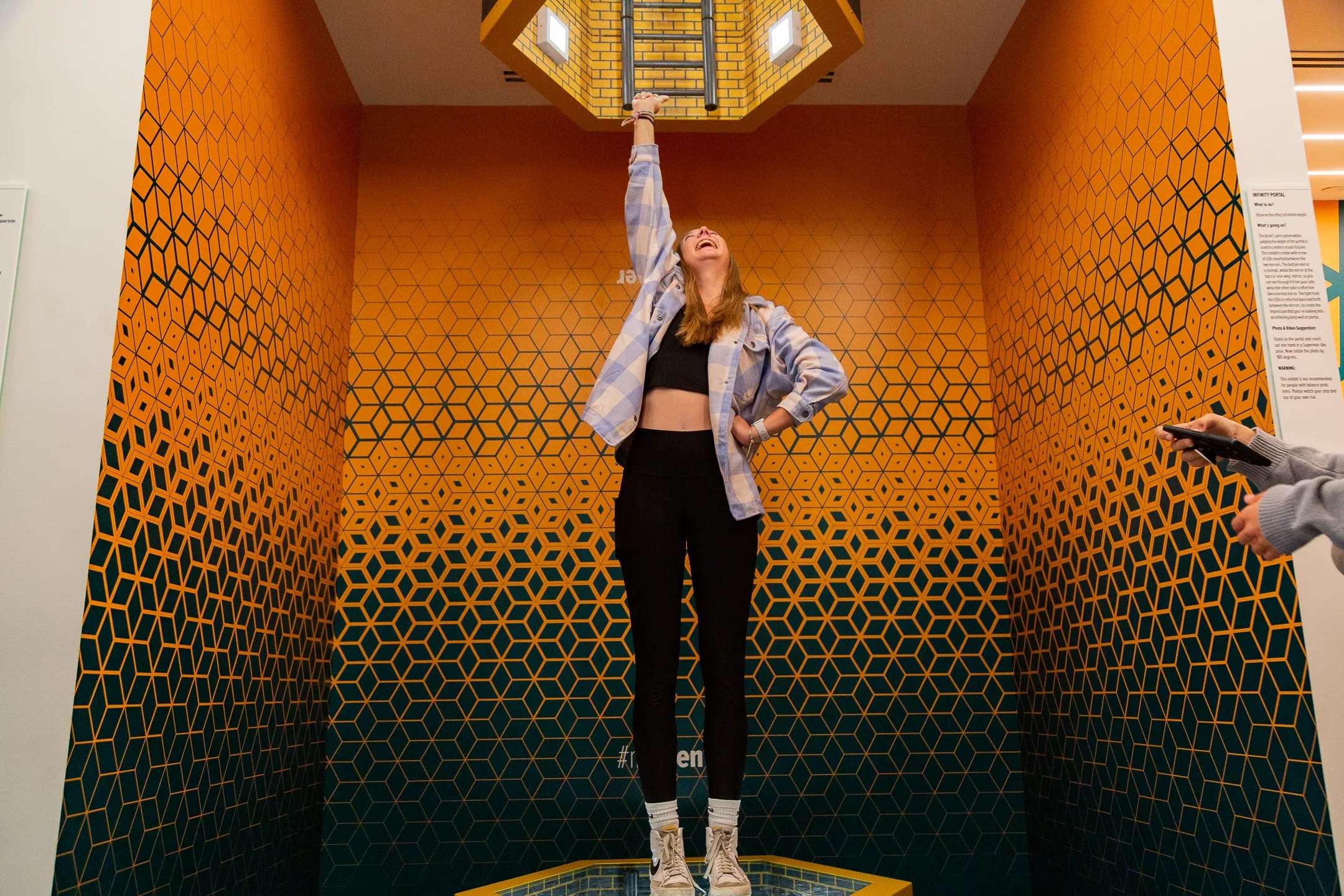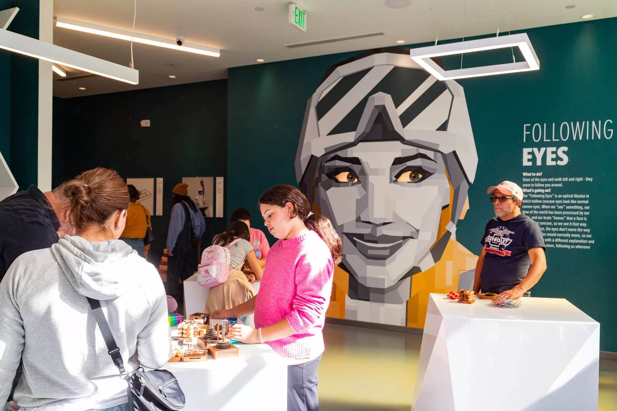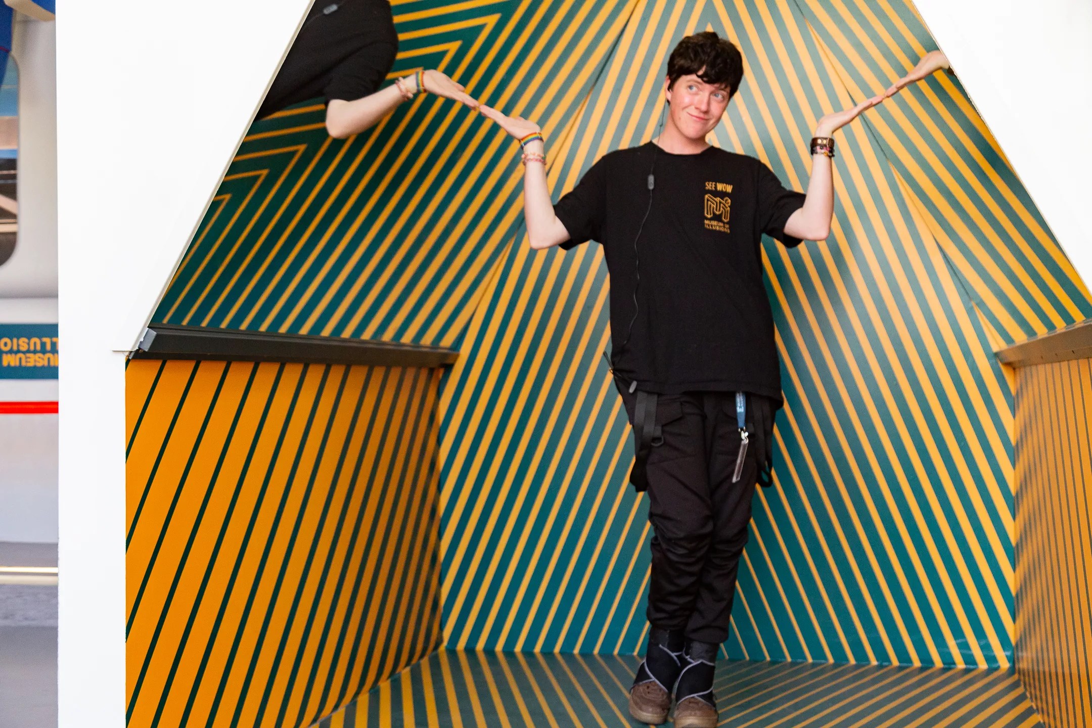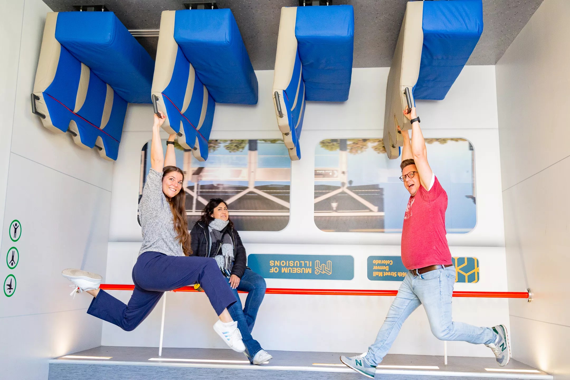 On a weekday afternoon, the place was packed, with kids darting from room to room followed by smiling parents, as well as a group of friends who’d traveled to Denver from Germany and decided to make a stop. Helpful museum employees were at each station, helping to explain the illusion and how it works, and taking pictures on request.