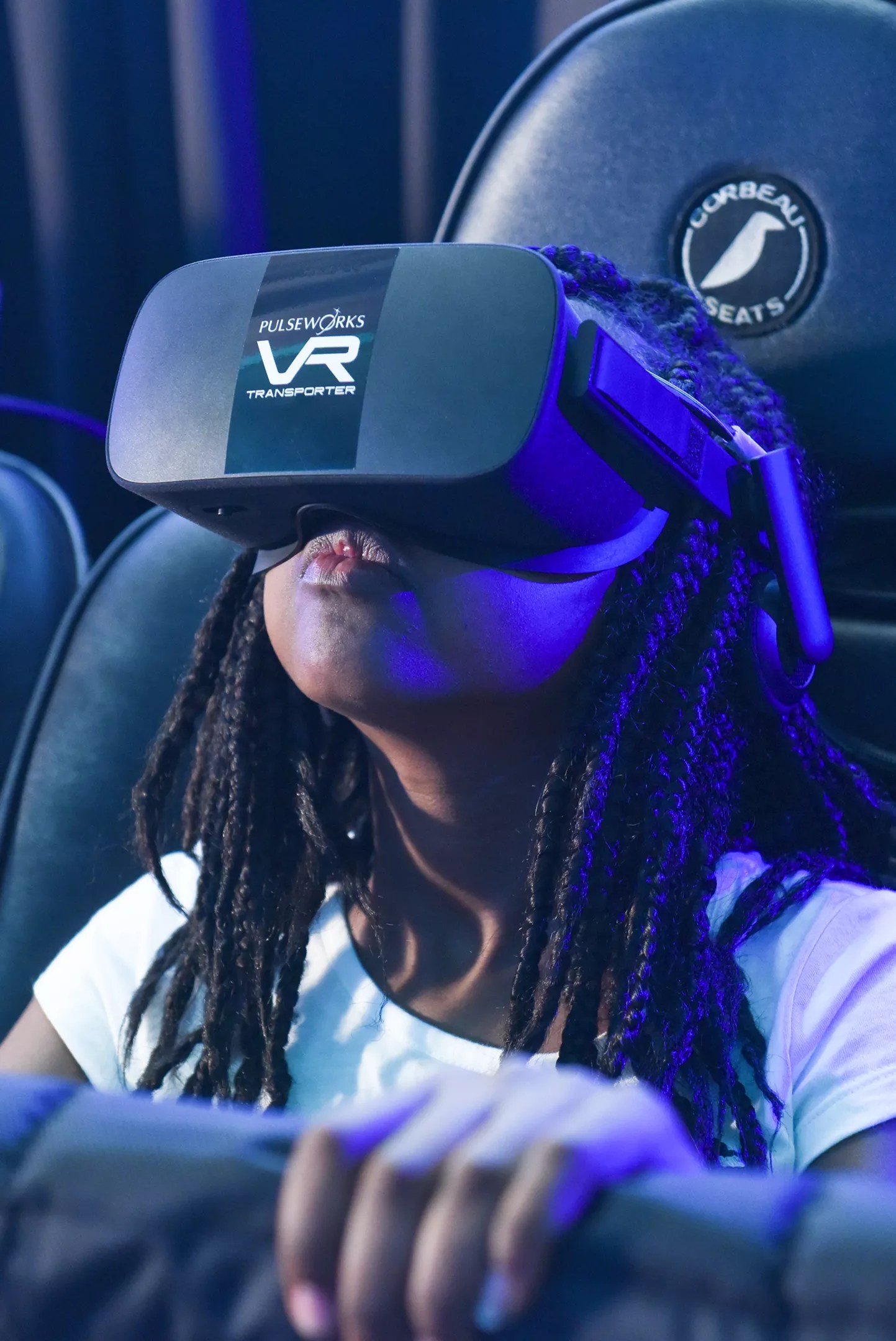 The arcade is open daily from 10 a.m. to 5 p.m.; after paying museum admission, adults can pay $10 and junior guests (ten and up) $9 for ten minutes of gaming time. (Members pay $9 and $8, respectively.) Ten minutes sounded short to me, but Wood says it’s a standard at other virtual-reality arcades. For those under ten, the arcade also has a virtual-reality ride, which takes anyone 42 inches or taller on a ride with three friends.