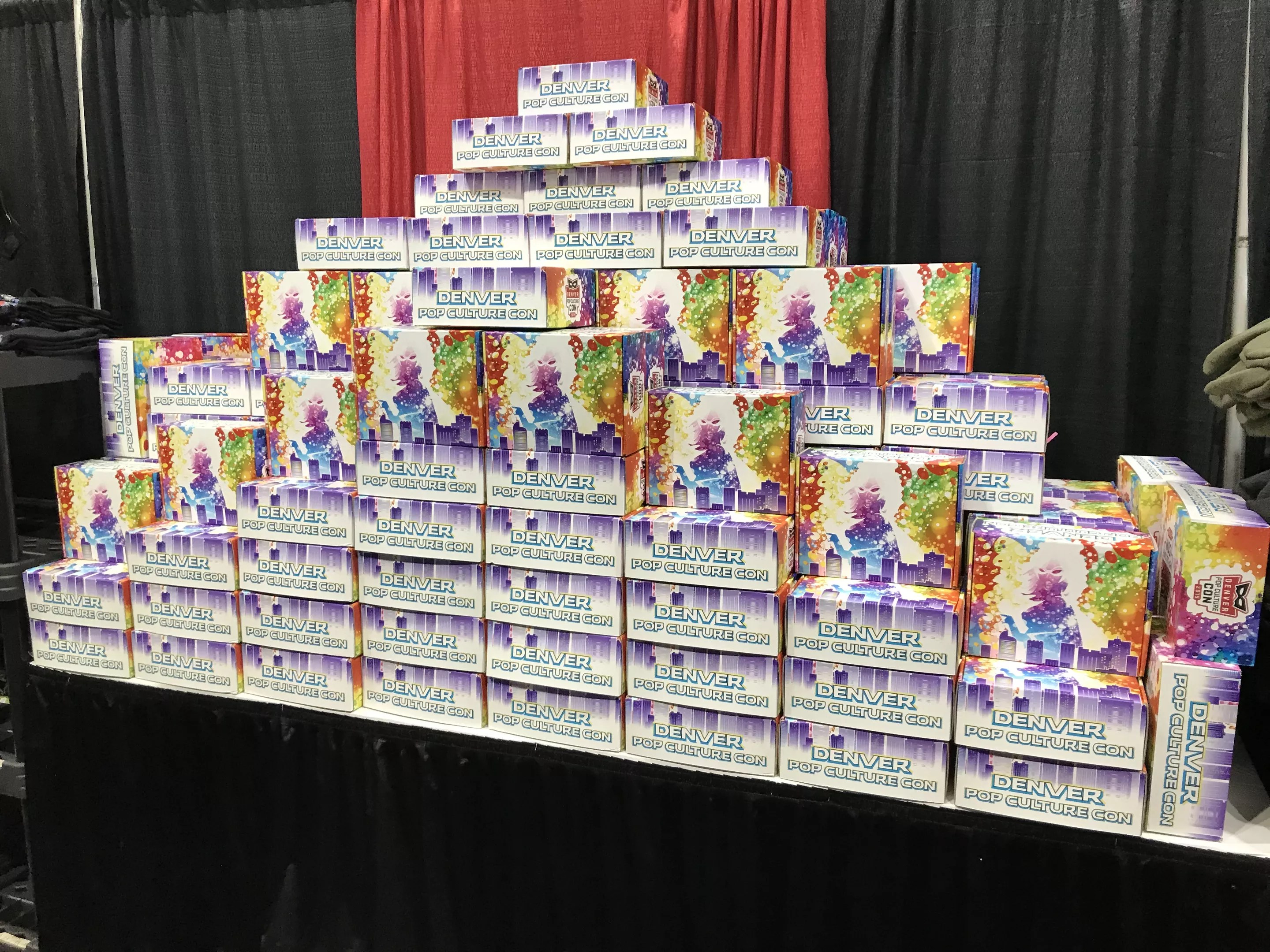 Speaking of convention swag, the Breckenridge pint glasses aren’t all that’s available. Denver Pop Culture Con has always had plenty of its own branded merch: shirts, lanyards, water bottles, patches, pins and more. And this year there’s something new: a $25 mystery box with the old Denver Comic Con brand. You’re not just buying a box of unsold product from previous years of the convention; you’re buying the joy of the surprise. And the unsold product. But mainly the joy.