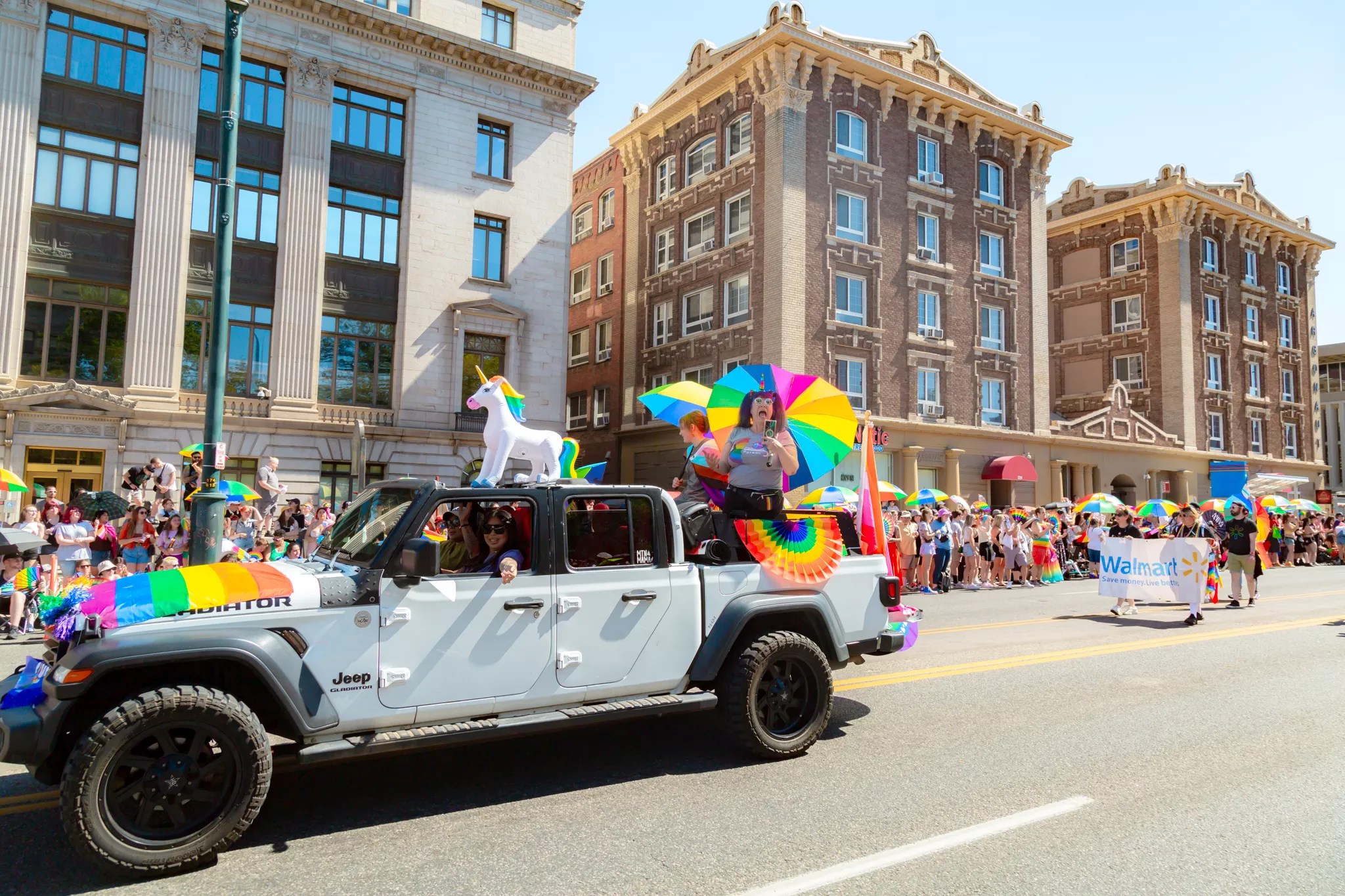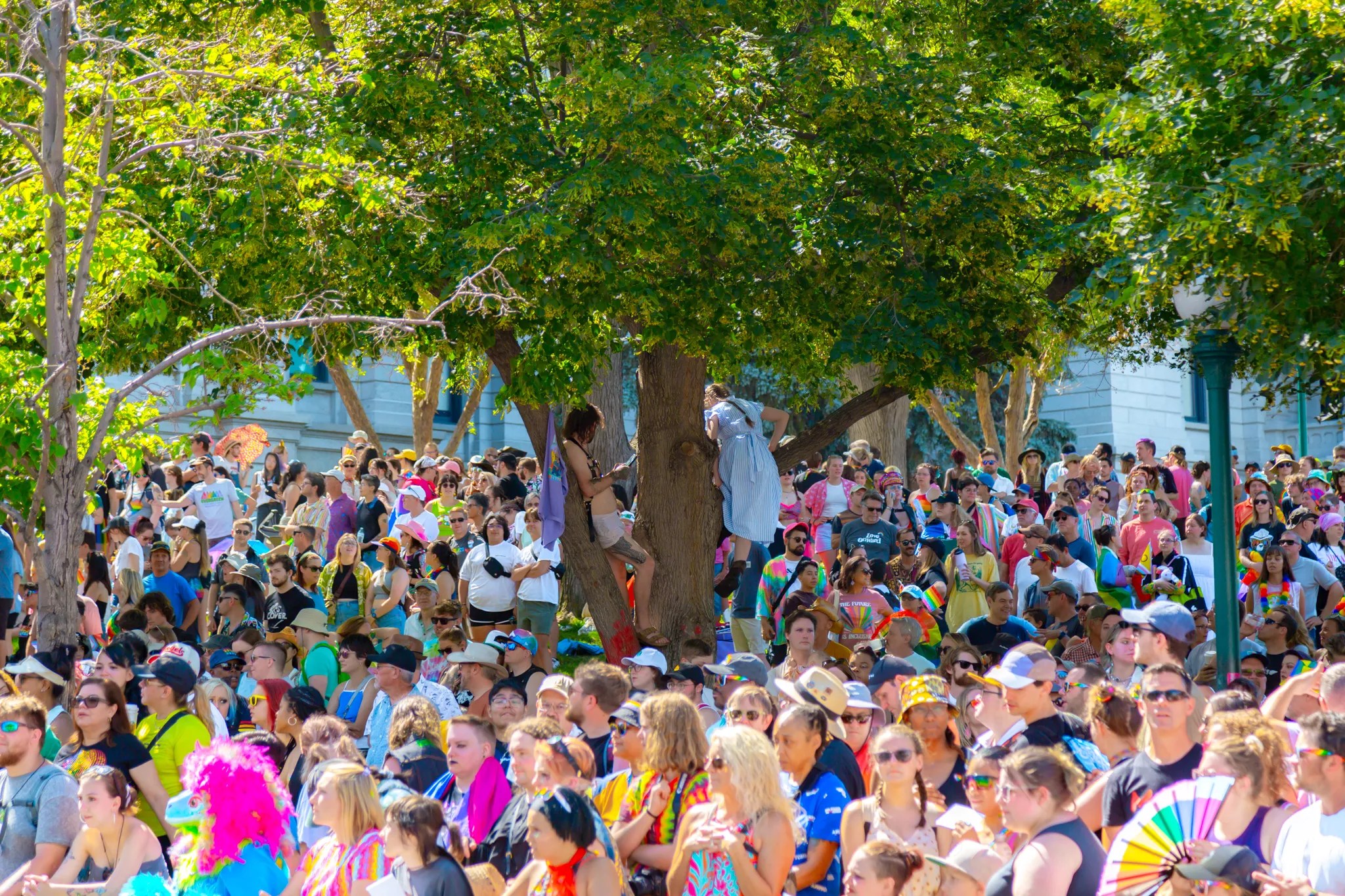 About 200 pro-Palestine protesters delayed the parade at its start on Sunday, before police moved them to the side of the street, according to CPR. The demonstrators later joined the parade down Colfax, and were welcomed to the PrideFest stage by MC DeMarcio Slaughter, who asked them to share their perspective. As many have since noted on social media, the history of Pride events is rooted in the right to protest, as well as the intersectionality of major issues.