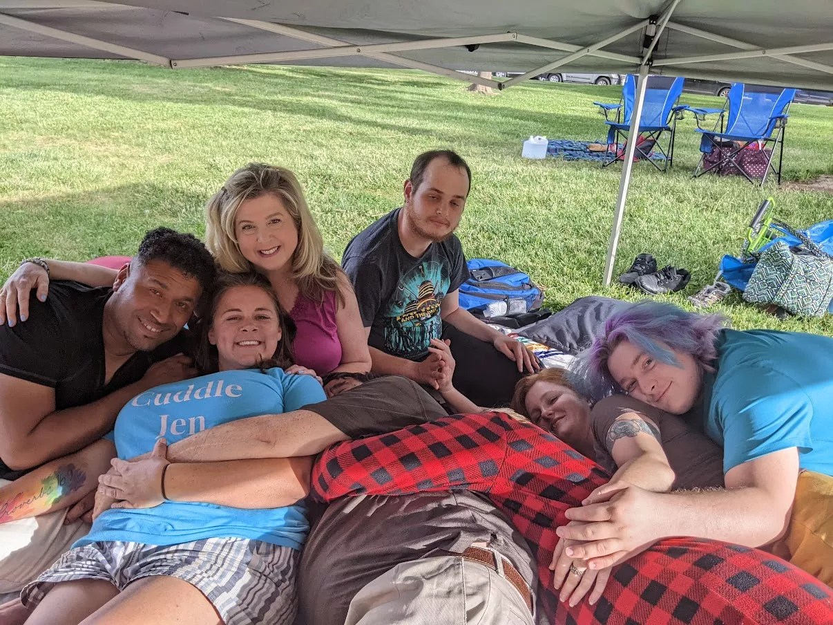 Cuddling changed that. “They convinced me that I could just try it without being touched. I could just sit in the corner, and I could be in this community with other people who believed the same things about safe touch,” she says. “I would not be touched if I didn’t want to be, and everyone had to ask for a verbal yes or a verbal no. I could be in the cuddle group as much as I wanted or as little as I wanted. So I went, and it was incredible.”