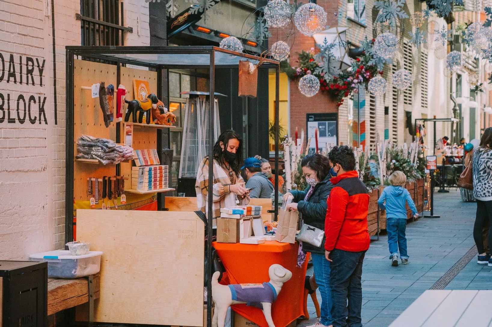SoSu Artist Collective Holiday Studio Sale American Field brings the Après Ski Holiday Market back to the Dairy Block Alley. Courtesy of the Dairy Block