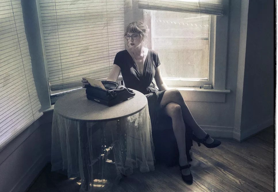 Typewriter poet Kelsey Carolyn Bowe.
