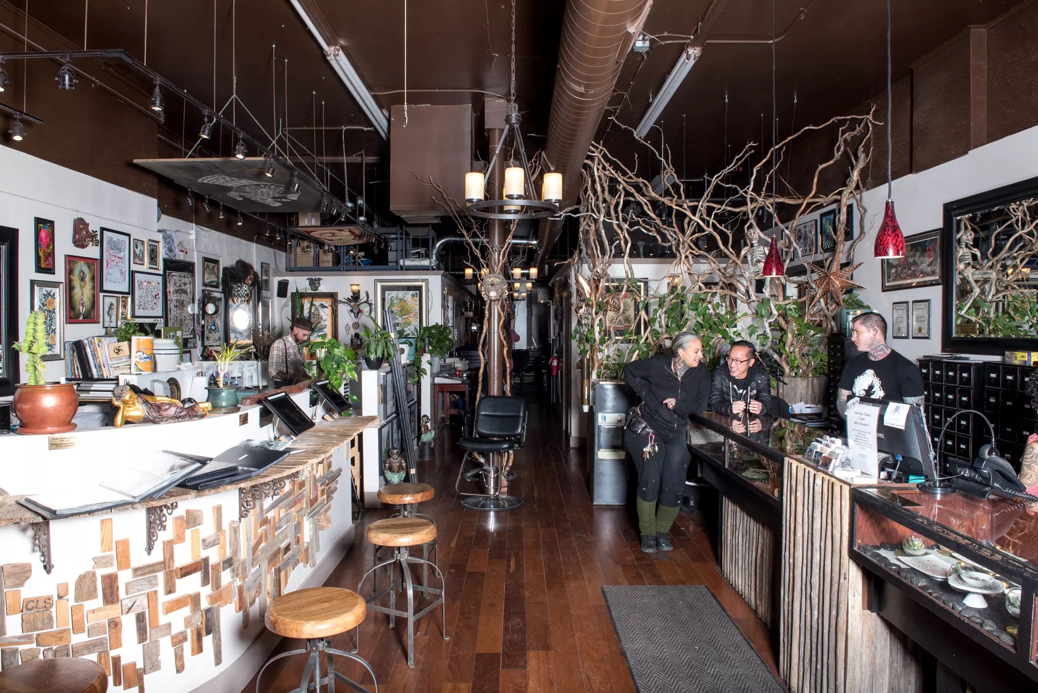 “In the late ’90s, we decided that we were gonna do shops with no flash on the walls — we were going to take it into this new, artsy realm,” Cardenas recalled. “We were just going to do only our own art and draw things for people instead of making them choose things off the wall. And with that, we also wanted to bring more of a marriage of body piercing and tattooing together. … It was in the late ’90s that we rebirthed shops that had more to them, more stories — I would say the modern primitives, the tribal aspect that we were more culturally respectful. We were talking about doing things for other reasons than being a rebel or being sexual. We explored all the subcultures of people we could have as clients. It was no longer about if you weren’t cool enough or tattooed enough. You wouldn’t walk into the shop and be scared away; you were welcomed in.”