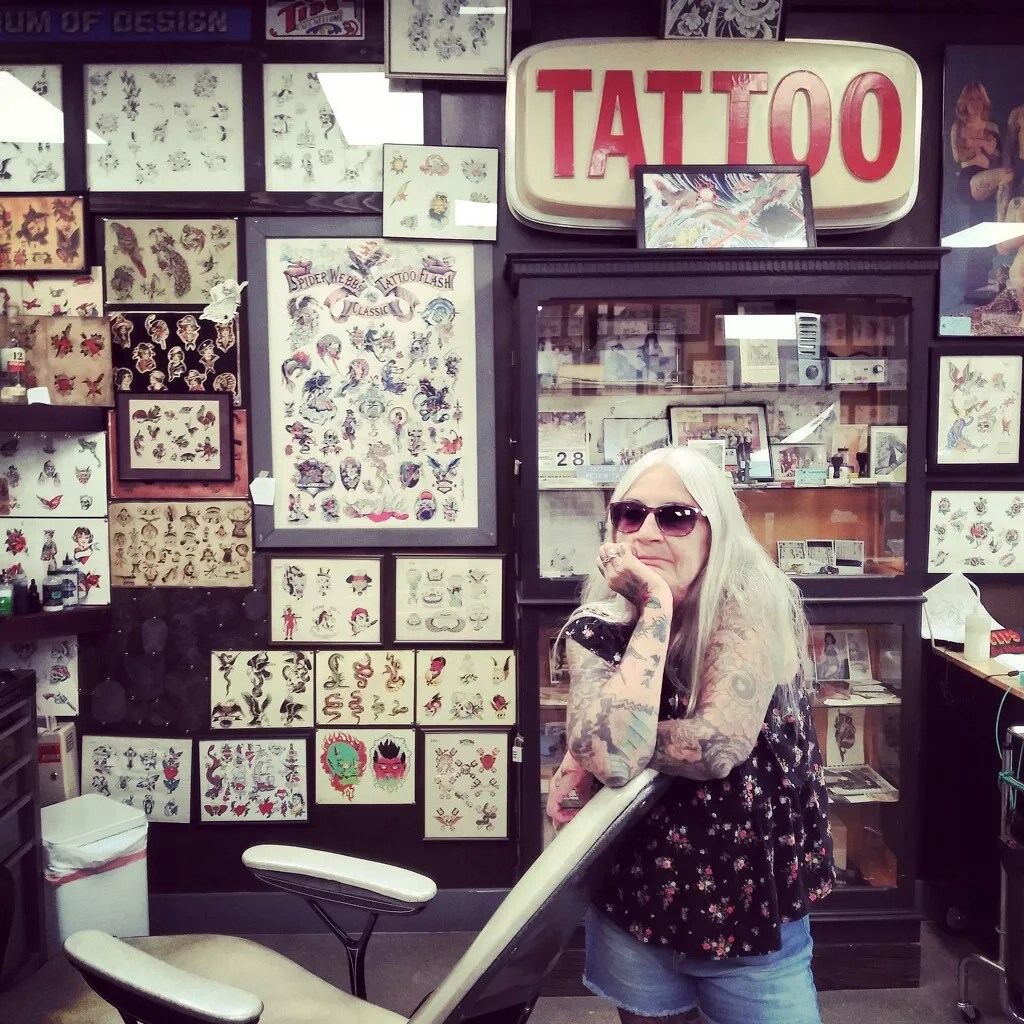 Mickie Kott was one of the female artists who got her start in Denver. “She teamed up with legends Greg Skibo, Frank Speaker and Edward Lee to form Metro Tattoo around 1990,” Pew says. “That shop was firebombed by a jealous competitor. After that, she reopened as Tattooing by Mickie.”
