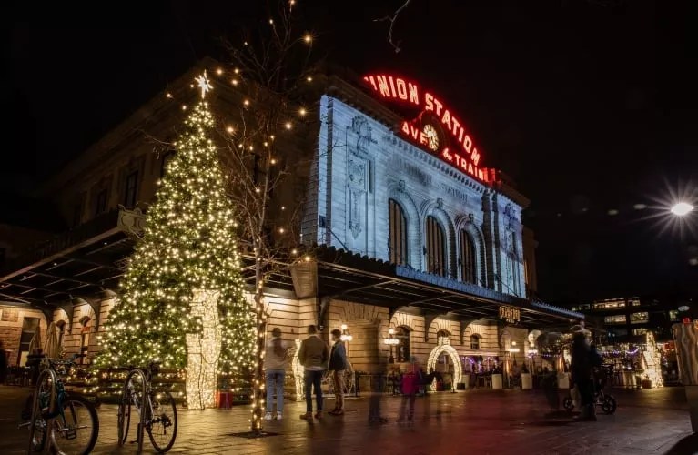 Denver’s Union Station is all lit up for the season, with the Merry & Bright Lights Show featuring over 7,000 bulbs and music. Find out more here.