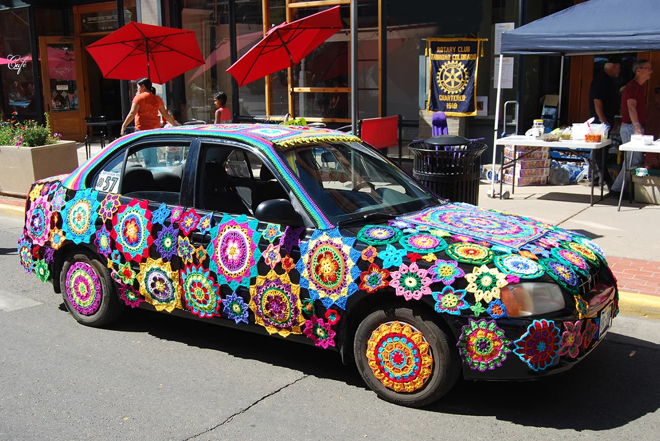 The doily car, from a past Art Car Parade in Trinidad.
