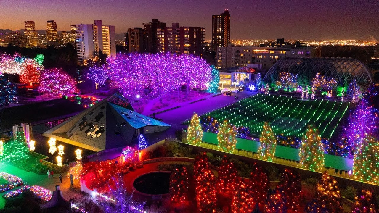 Every holiday season, the Denver Botanic Gardens brings color back to its York Street location. Blossoms of Light has been a signature event for over three decades, drawing crowds with glowing displays. Strung on branches, along walkways, and as far as the eye can see, lights illuminate the venue through January 7. When you visit, warm up with hot chocolate and a charming “breakfast for dinner” menu. Admission is $24 for adults, and online reservations are highly recommended here.