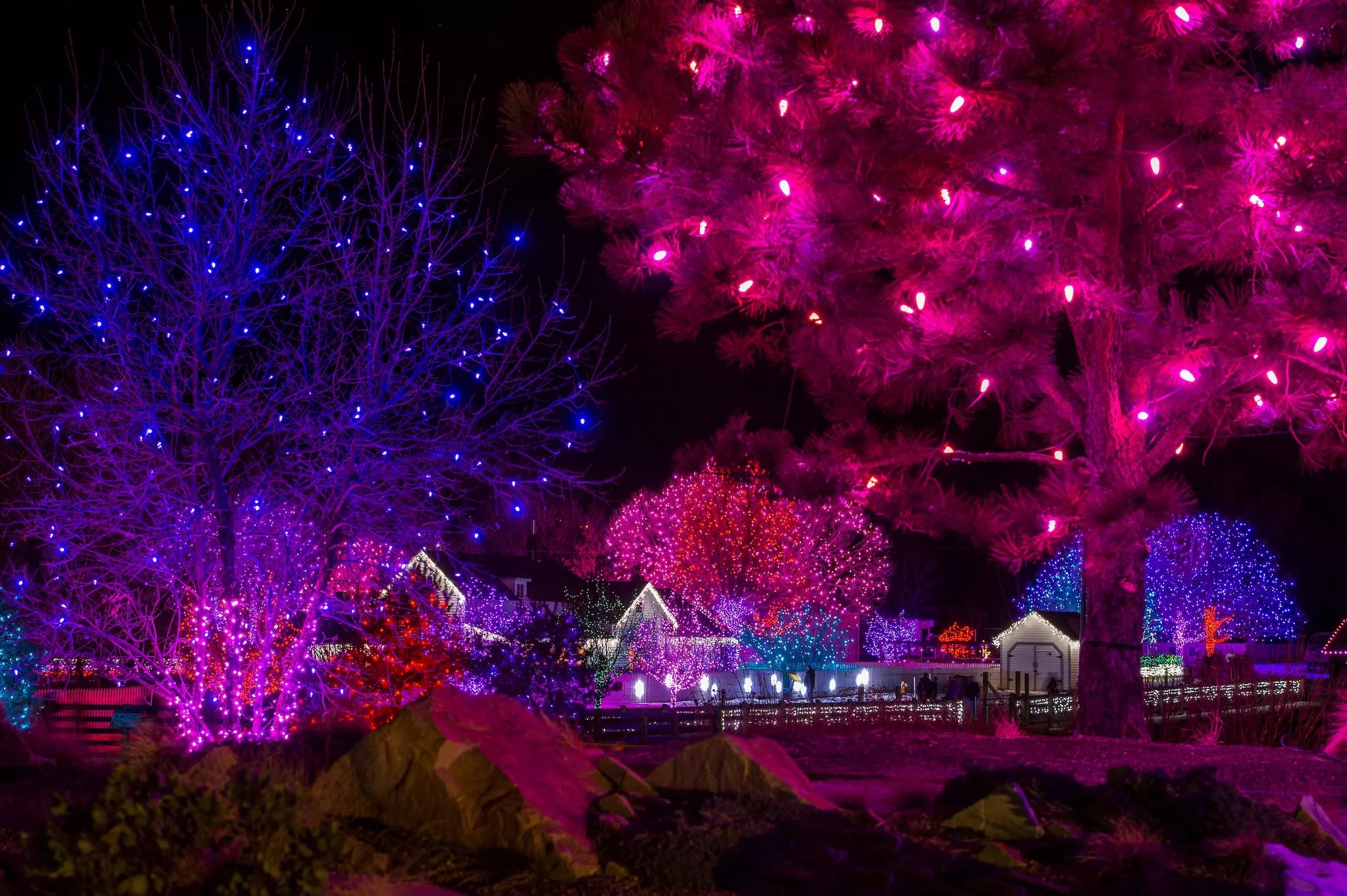 Chatfield Farms, the country cousin of the Denver Botanic Gardens, offers a more rustic and historical holiday lighting show than Blossoms of Light, but with technological upgrades, including synchronized light patterns, light tunnels and singing trees. While Chatfield is slowly moving into the 21st century, cool old tractors covered with lights remain intact, and the 1880s Hildebrand Ranch homestead still stands. Bring the family! Open weekends through December 11, and nightly December 16 through January 1, 5 to 8:30 p.m. (closed Christmas Day) Learn more and purchase timed tickets, $10 to $16 (free for children two and under), plus an optional $5 to add on a visit with Santa, online only, here.