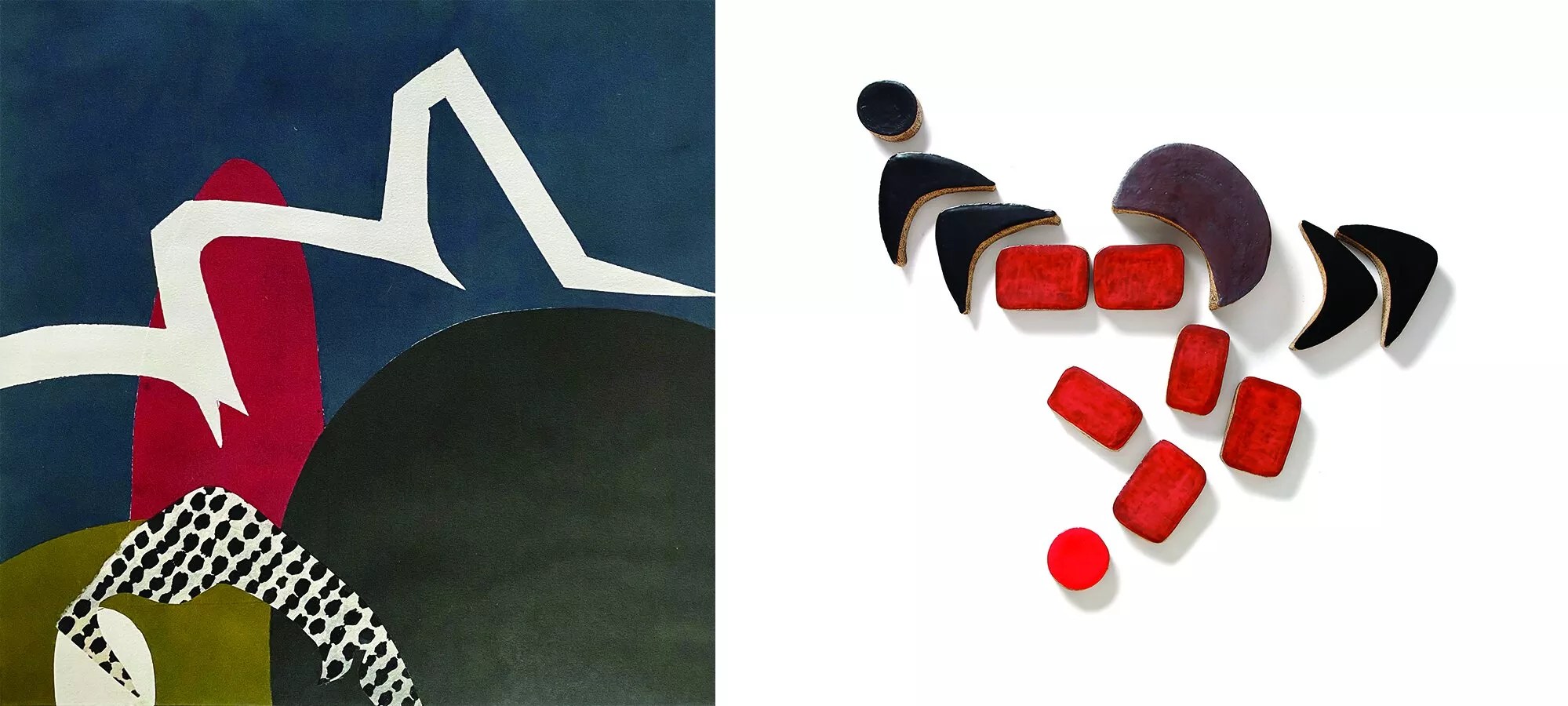 Lydia Riegle’s prints and Jean Smith’s ceramic installations recall mid-century design.